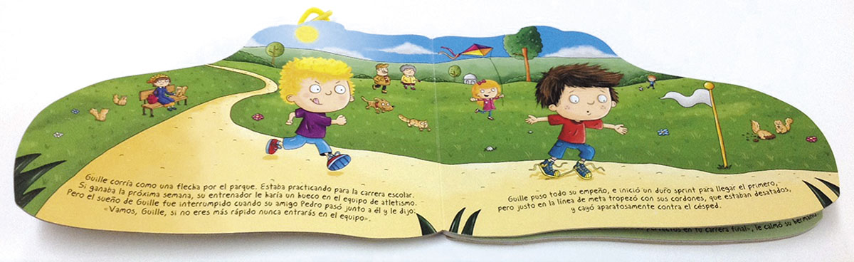 Sabes atarte los cordones? Con este libro en forma de zapatilla puedes aprender. Observa cómo lo hace Guille y sigue las instrucciones, practica con el cordón y... ¡podrás hacerlo tú solo!