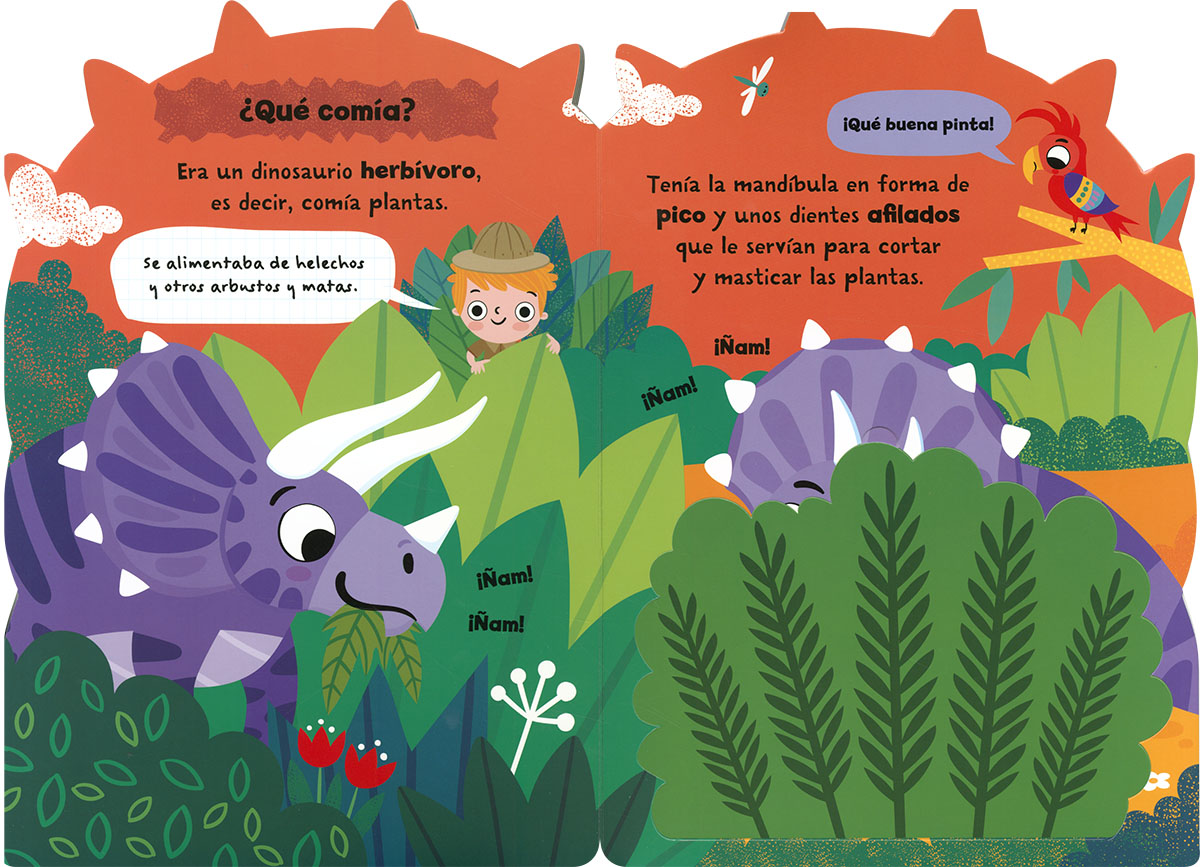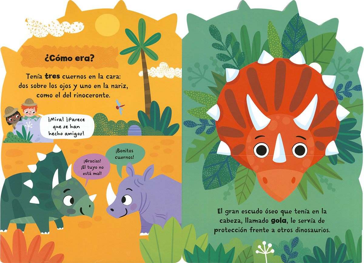 Levanta las solapas, adéntrate en el mundo prehistórico y conoce al apacible tricerátops. Un libro de cartón gigante perfecto para jóvenes amantes de los dinosaurios.