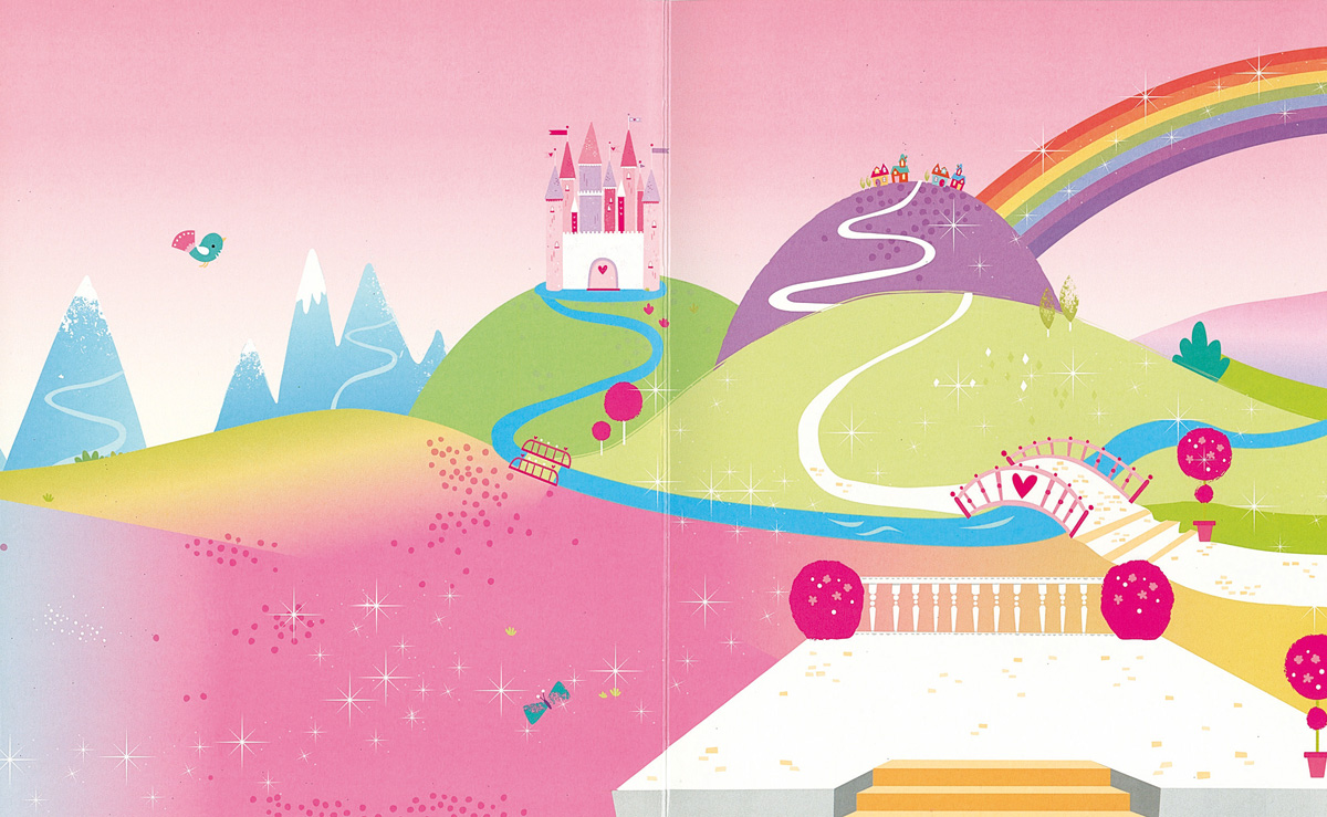 Crea tu mundo mágico con dos superescenarios desplegables, 300 increíbles pegatinas y más de 60 pegatinas con relieve.