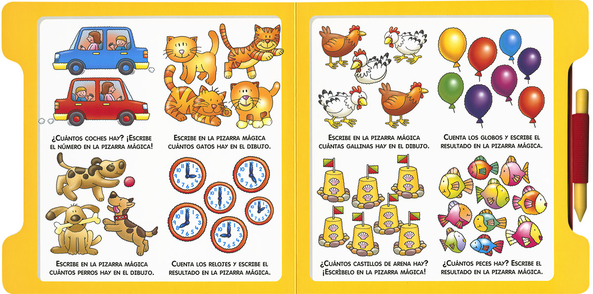 Aprende a resolver sencillas sumas y restas y escribe el resultado en la pizarra mágica. Para borrar los números, sólo tendrás que volver a introducir la pizarra en su sitio. ¡Lo que hayas escrito desaparecerá como por arte de magia!