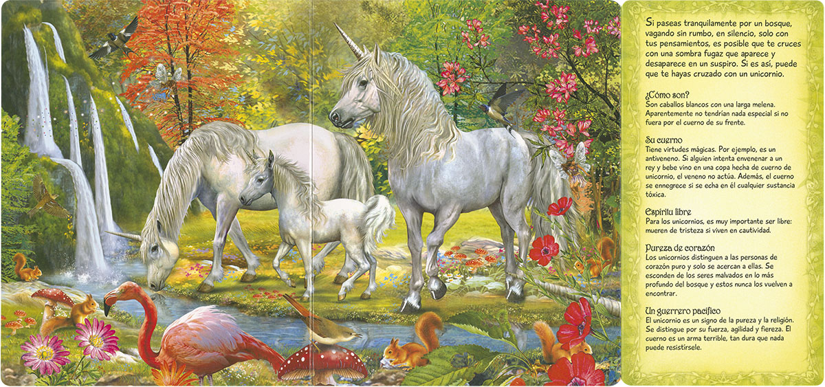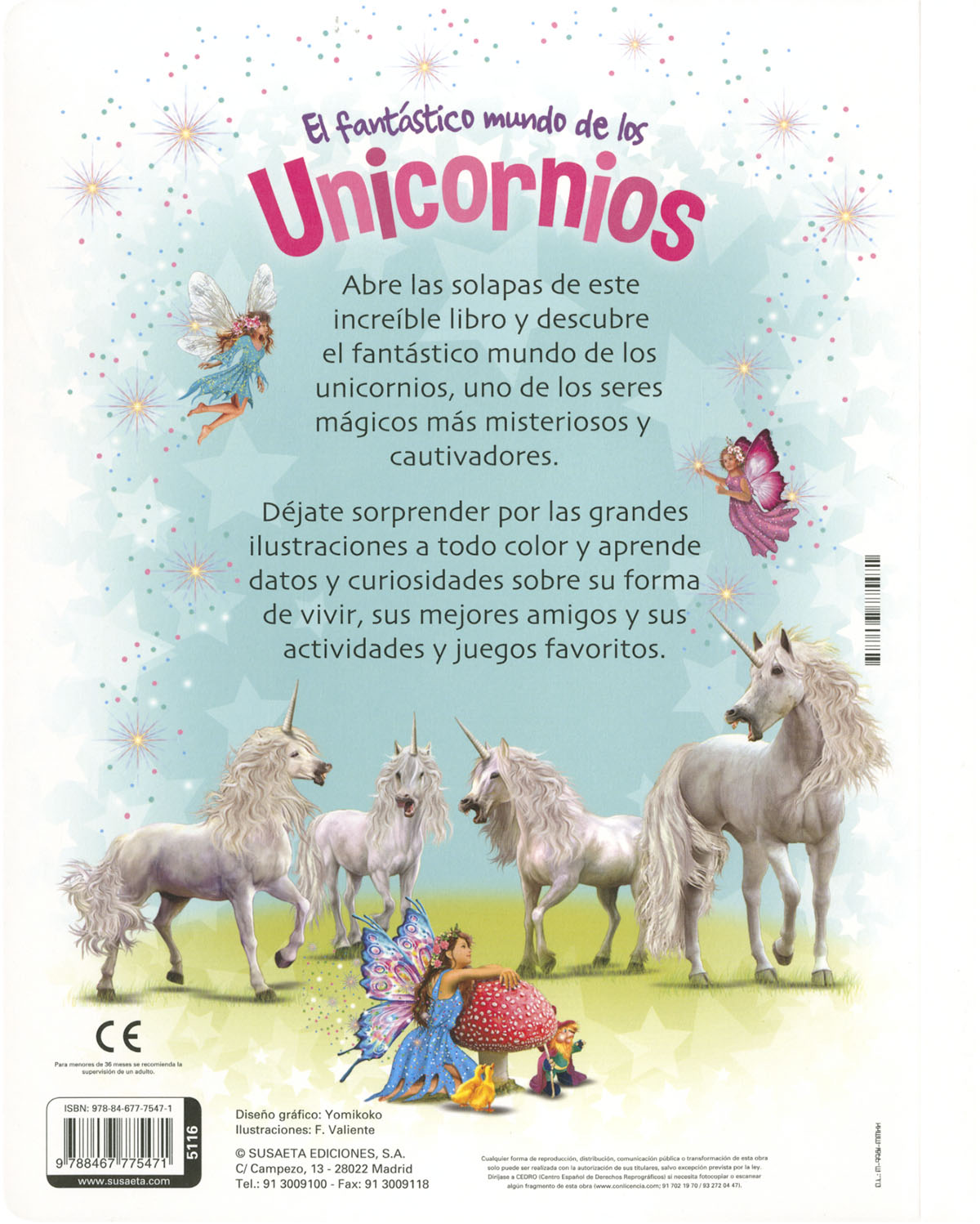 Abre las solapas de este increíble libro y descubre el fantástico mundo de los unicornios, uno de los seres mágicos más misteriosos y cautivadores. Déjate sorprender por las grandes ilustraciones a todo color y aprende datos y curiosidades sobre su forma de vivir, sus mejores amigos y sus actividades y juegos favoritos.