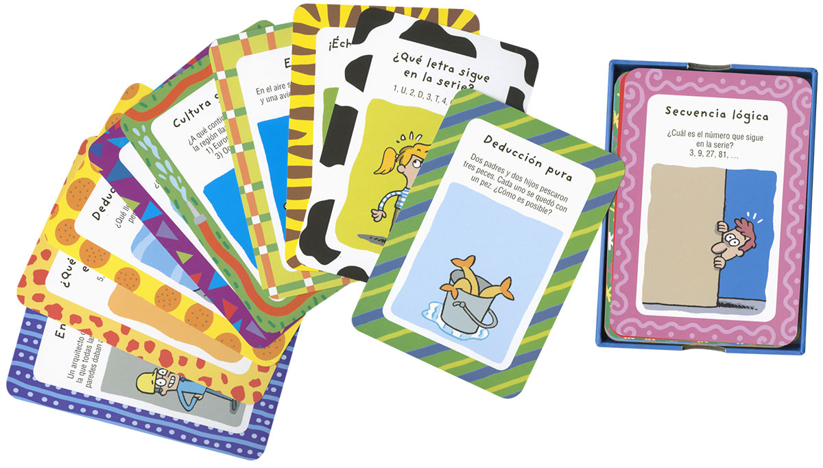 Una baraja superdivertida con 52 cartas diferentes, que incluyen preguntas con trampa y de cultura general, secuencias l贸gicas, enigmas, verdadero o falso, y mucho m谩s. Para que te diviertas con tu familia y amigos a cualquier hora y en cualquier sitio, y le eches imaginaci贸n a tus juegos.