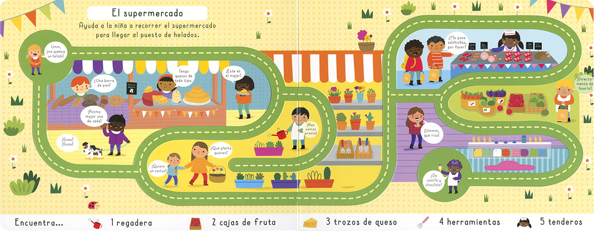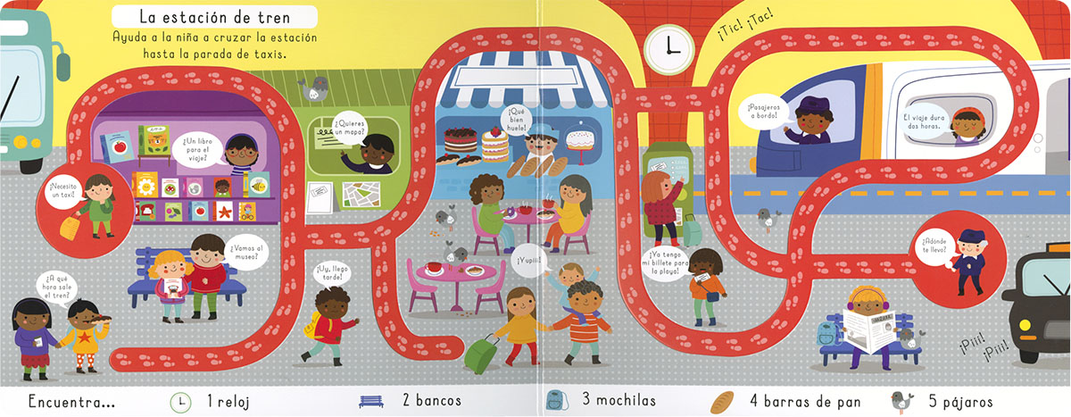 En la estación de tren, en el supermercado, en el parque... En esta ciudad puedes hacer amigos por todas partes. ¿Quieres conocerlos a todos? Recorre con el dedo el surco que encontrarás al pasar cada página y te los irás encontrando por el camino. Un libro de cartón encuadernado, con preciosas ilustraciones y pequeños laberintos que divertirán a los niños.