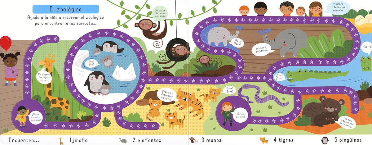 Encuadernación:  Cartoné plastif. mate, brillo y troquelado, int.de cartón con camino troq. para recorrer con el dedo