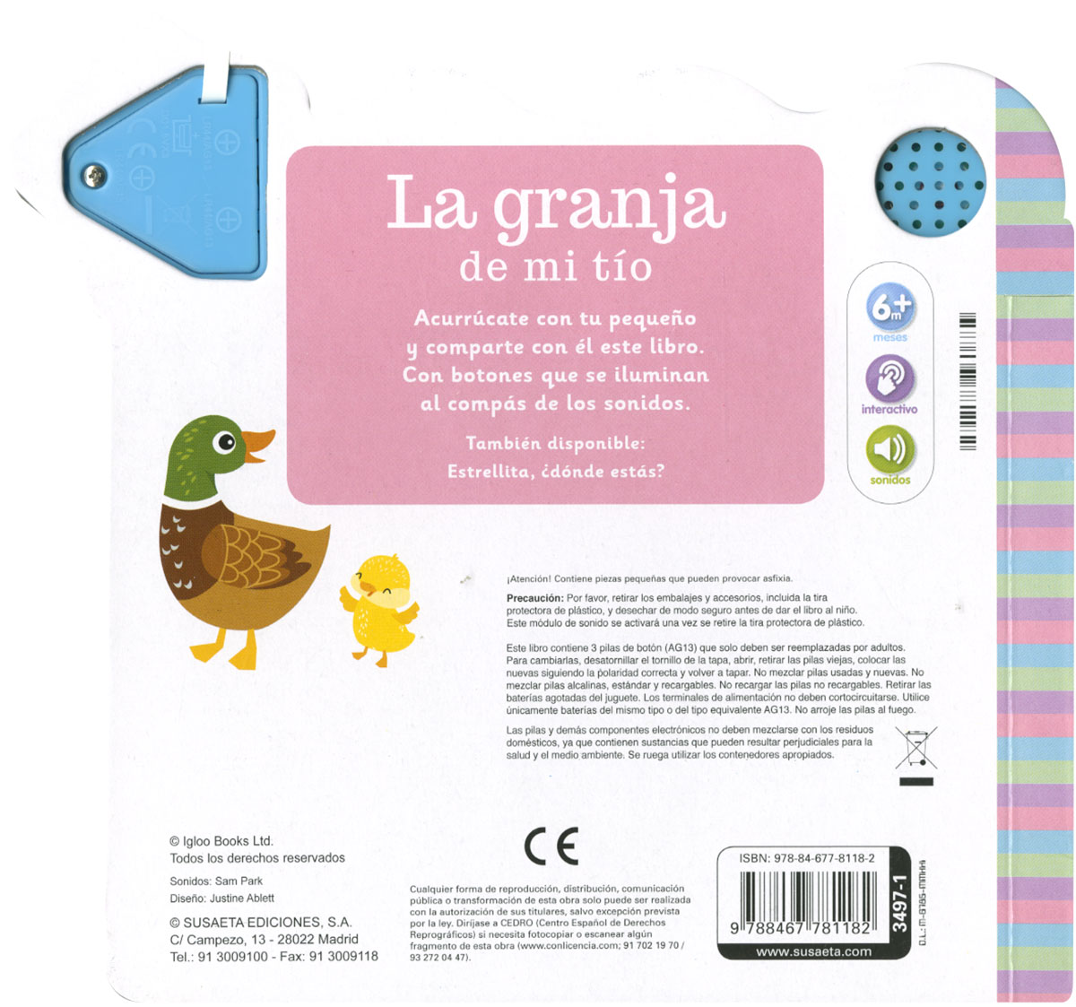 Encuadernación:  Cartón troquelado y plastificado mate y brillo con 4 pulsadores sonoros luminosos