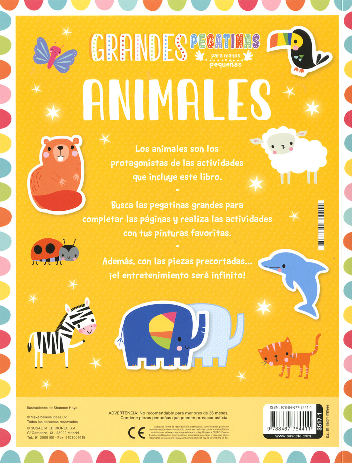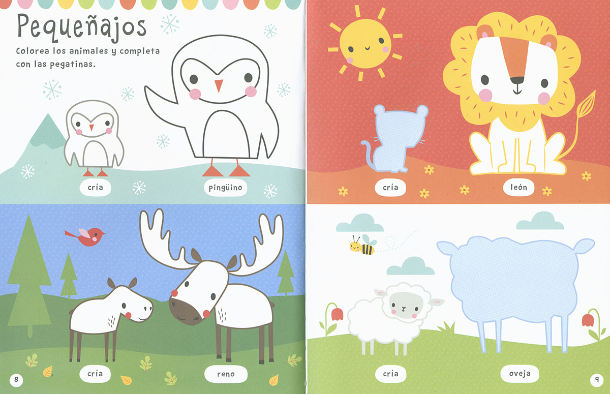 Completar las páginas de este libro es muy fácil con las pegatinas que encontrarás en el interior. Busca los animales y pégalos donde corresponda; si tienes las manos pequeñas, no te preocupes... ¡las pegatinas son grandes! Después, realiza las actividades y juega con las piezas extraíbles, que además te servirán como plantillas para dibujar otros animales. ¡Este libro está lleno de diversión!