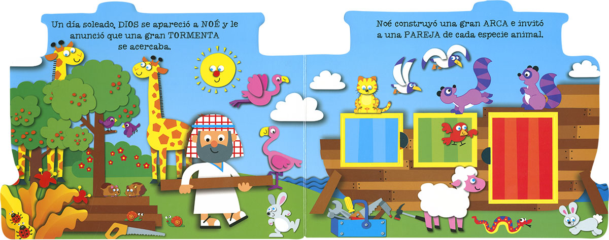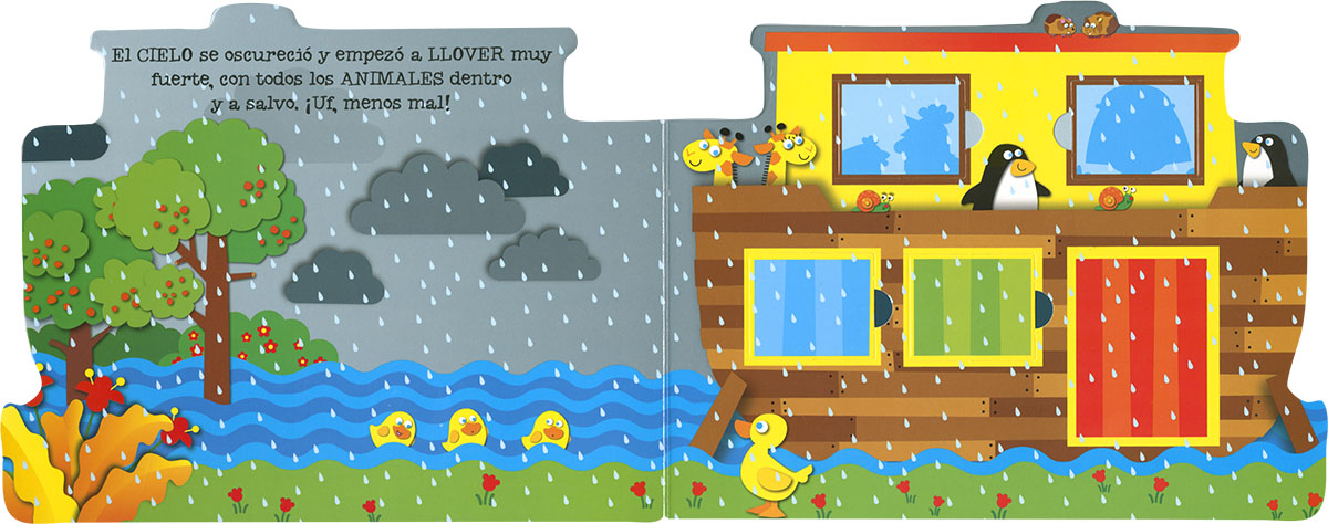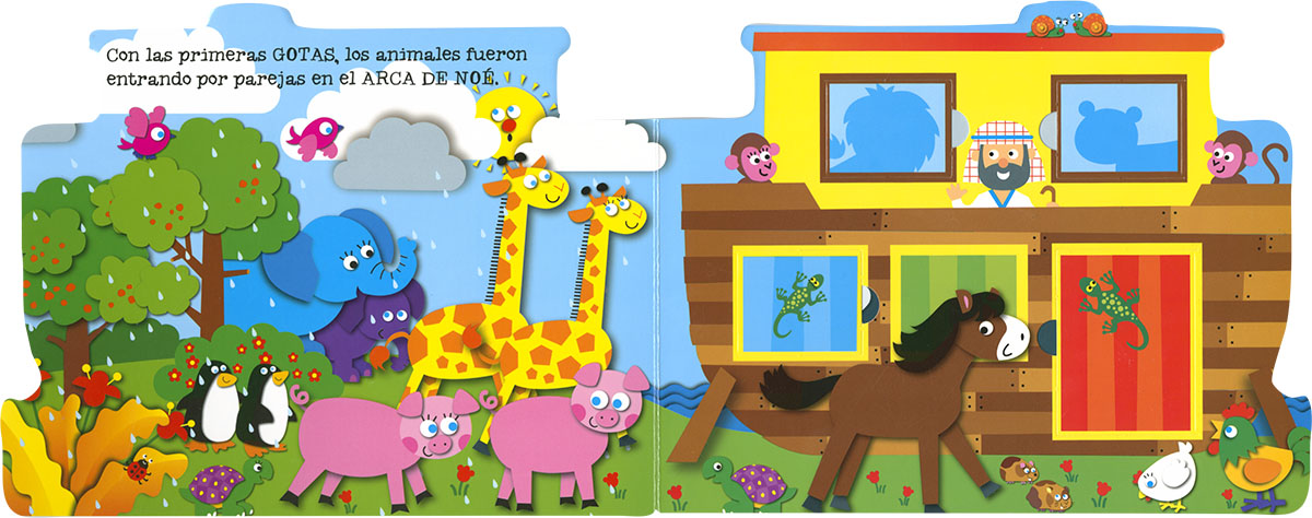 Ven a disfrutar de la historia del arca de Noé con este libro lleno de ventanitas y preciosas ilustraciones.