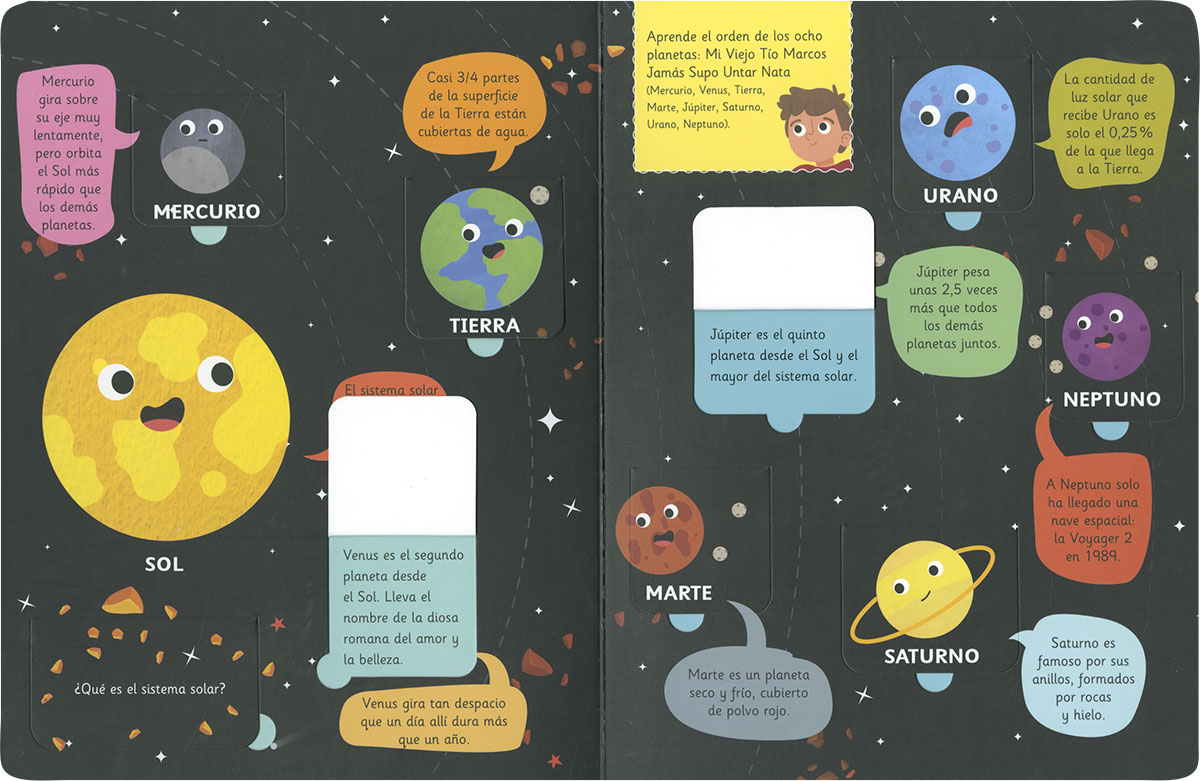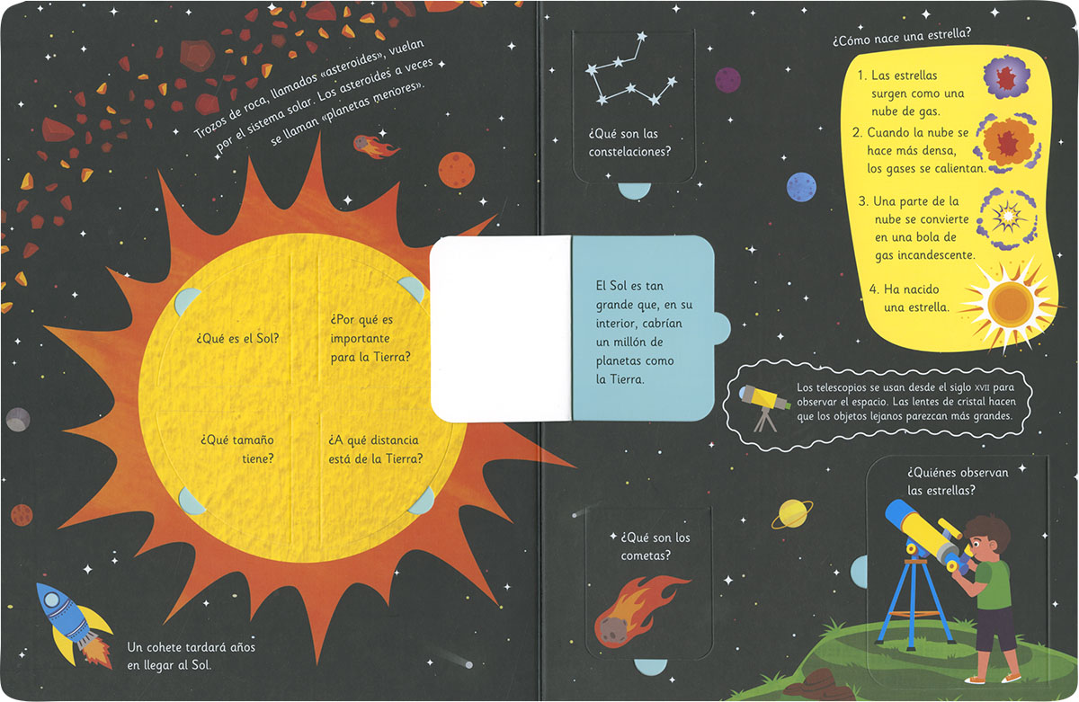 Descubre el espacio con este libro de cartón repleto de solapas que te enseñarán los datos más fascinantes. Con un lenguaje ameno y accesible, este libro es ideal para los pequeños lectores y las mentes más curiosas.