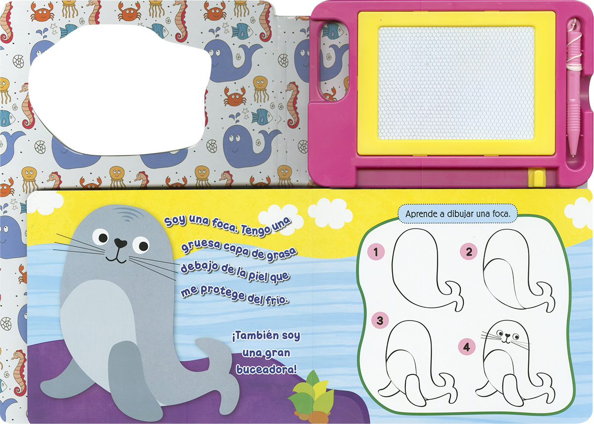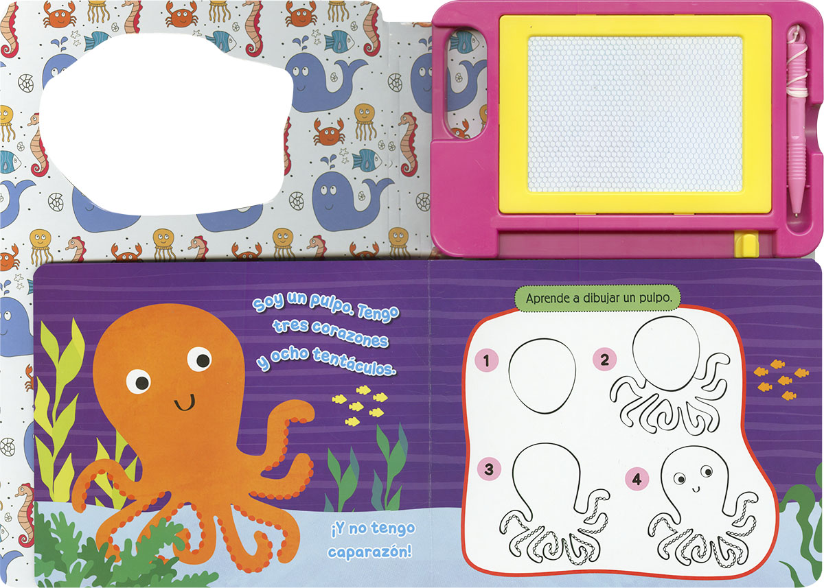Conoces a los animales del mar? Con este libro de cartón podrás aprender a dibujarlos, ya que incluye indicaciones para hacerlo y una pizarra donde podrás practicar cuantas veces quieras. ¡Aprenderás a dibujar diez animales!