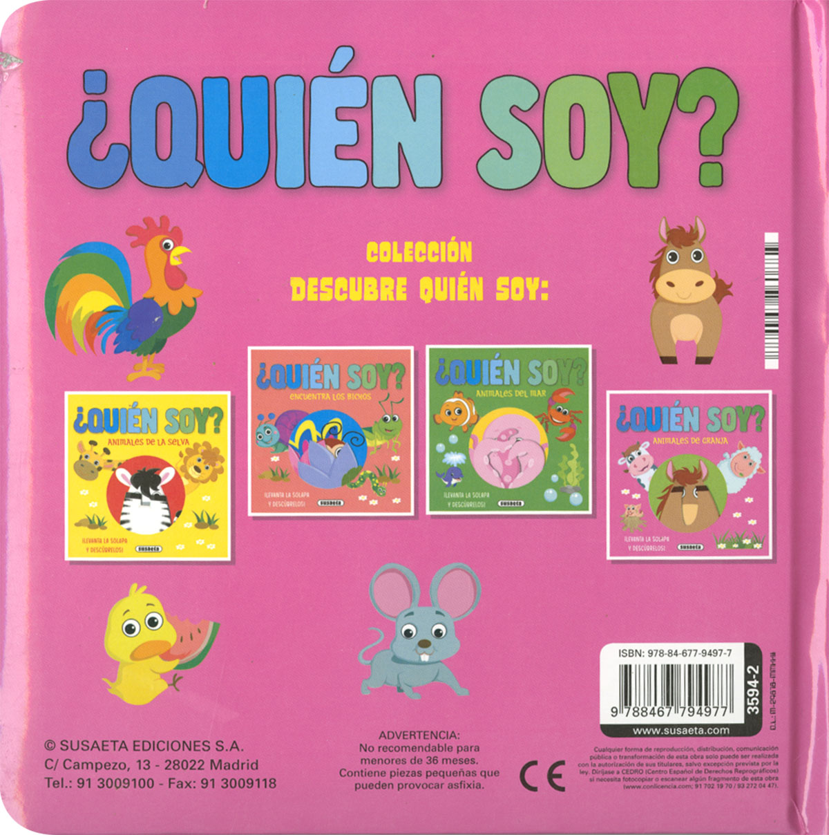 Quiénes somos? Solo podemos decirte que vivimos en una granja, pero para averiguar qué animales somos tendrás que levantar las solapas. Descúbrelo con este libro infantil de cartón para leer y jugar.