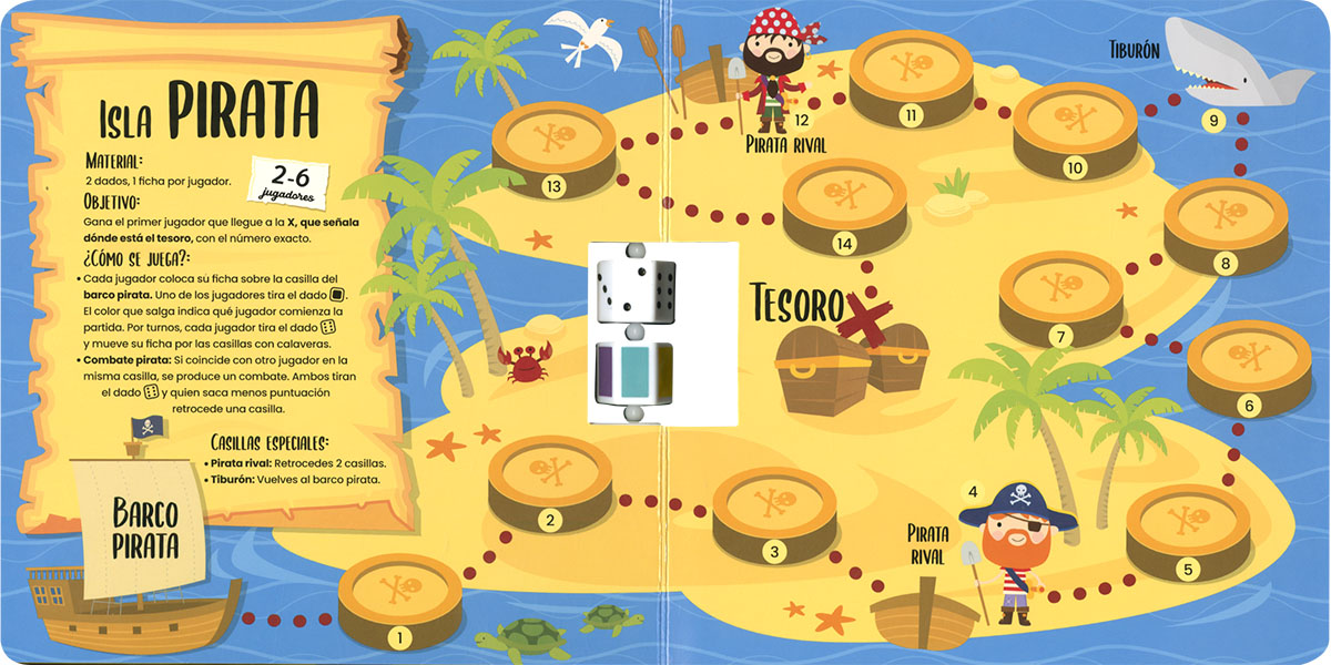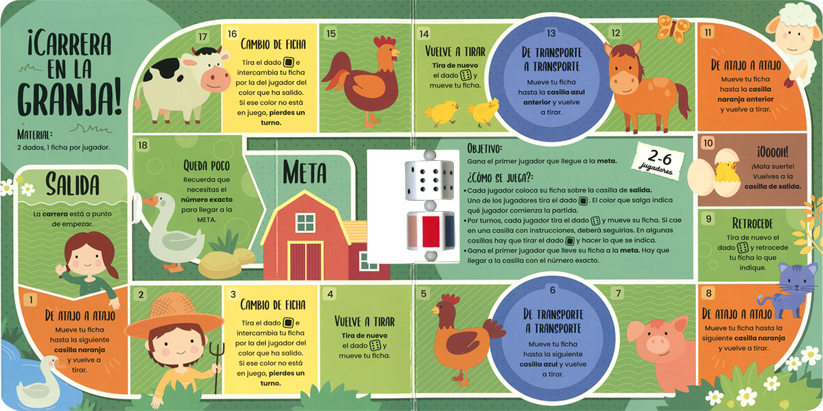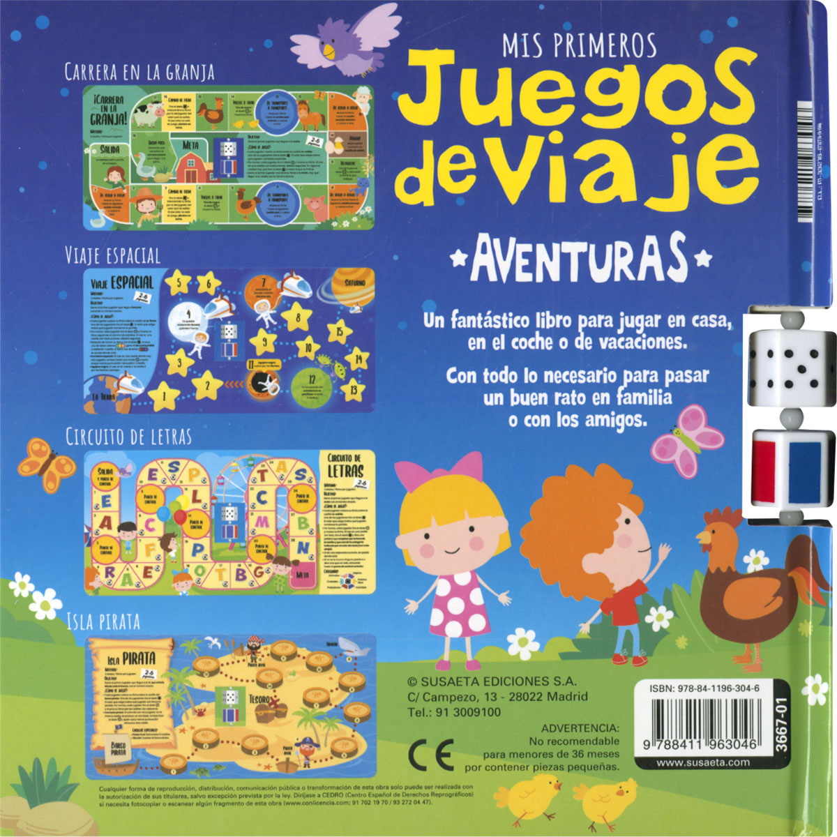 Un fantástico libro troquelado para jugar en casa, en el coche o de vacaciones, estés donde estés. Con todo lo necesario para pasártelo en grande en familia o con los amigos: cuatro tableros con juegos diferentes relacionados con las aventuras, dos dados (uno de colores y otro de números) y seis fichas adhesivas reutilizables. ¡Llévatelo contigo a donde quieras!