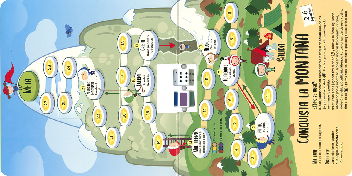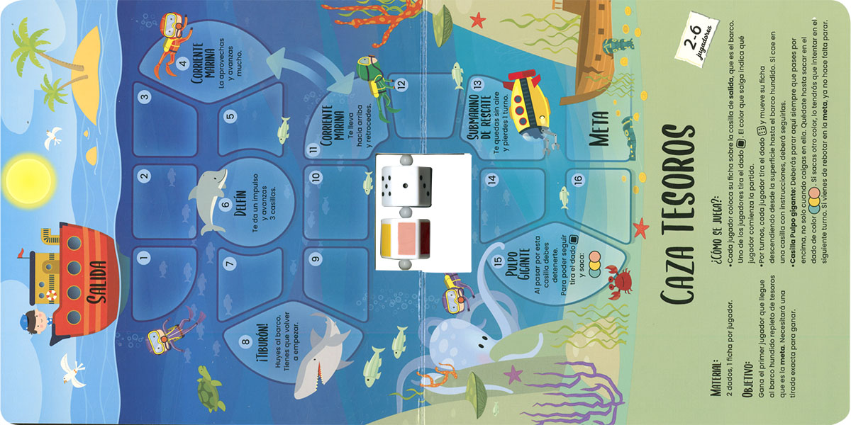 Encuadernación:  Cartoné con cubierta plastificada brillo, troquelado con dados y fichas dentro.