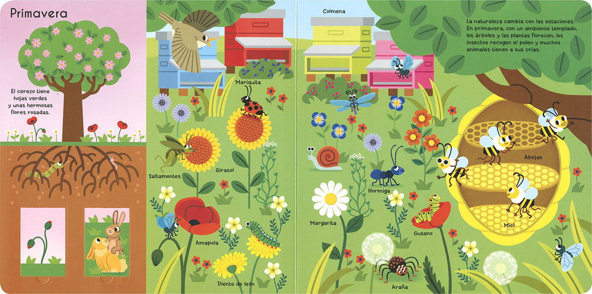 Solapas que se levantan, relieves que se tocan, ruedas que giran, efectos brillantes... Un libro interactivo que ofrece a los más pequeños la posibilidad de jugar y aprender sobre la naturaleza mientras manipulan y experimentan con sus manos.