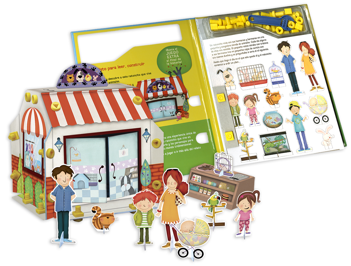 Este libro contiene todo lo que necesitas para representar la historia que se cuenta en el interior: piezas de cartulina, tuercas, tornillos y hasta una llave inglesa. ¡Sin olvidar a los personajes! Juega con las figuras y ¡deja volar tu imaginación!