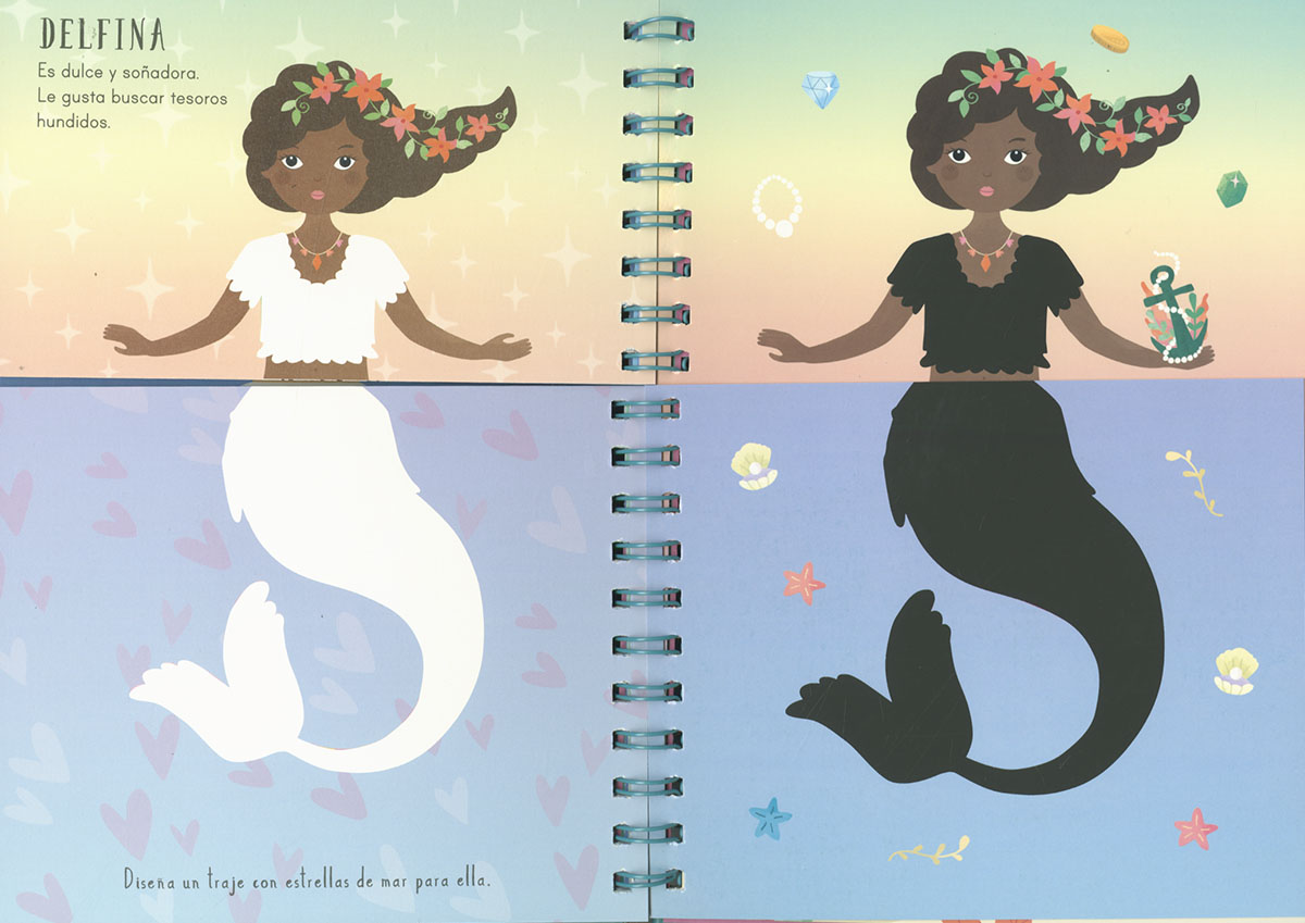 Rasca con el buril y descubre preciosos diseños. Dibuja los tuyos y coloréalos. Después, mezcla los diseños y viste a las sirenas una y otra vez. ¡Puedes hacer más de 100 combinaciones diferentes!