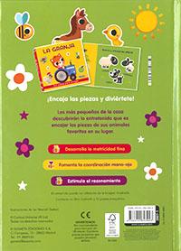 Este paquete infantil contiene un libro de cartón con páginas troqueladas para que el bebé lector encaje en los huecos las figuras de la granja que se incluyen. Desarrolla la motricidad fina, fomenta la coordinación mano-ojo y estimula el razonamiento. Con 12 piezas para encajar, proporciona además una divertida forma de pasar el rato.