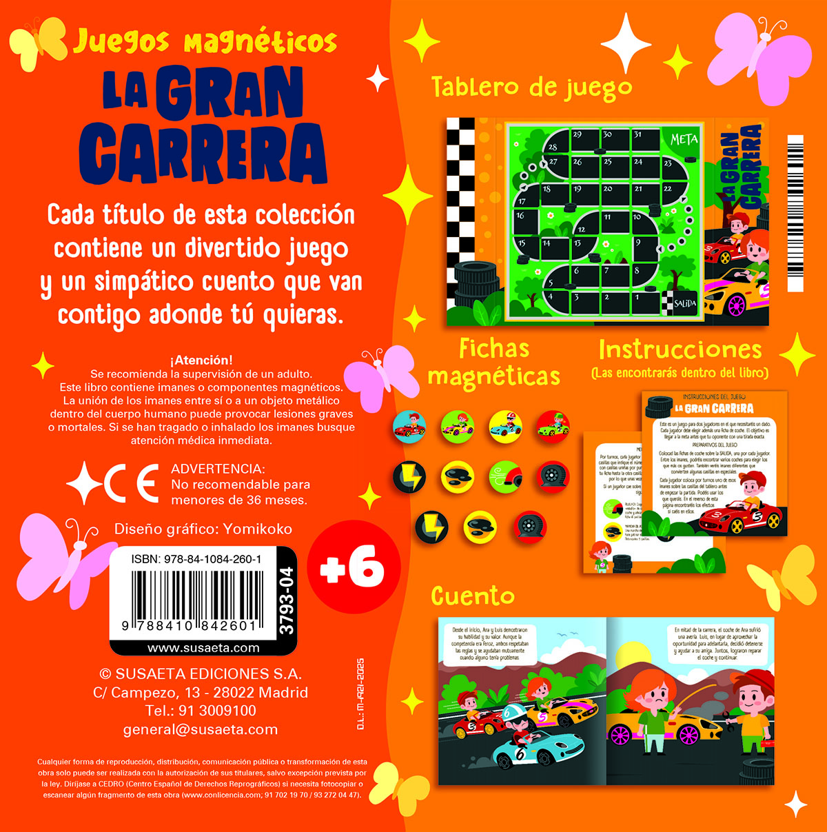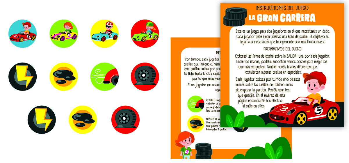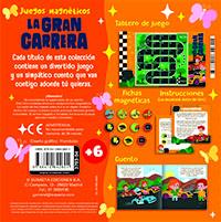 En esta caja de la colección Juegos magnéticos encontrarás un divertido juego, con fichas e instrucciones, y un simpático cuento sobre dos buenos amigos y una carrera de coches, que podrás llevar a donde tú quieras.