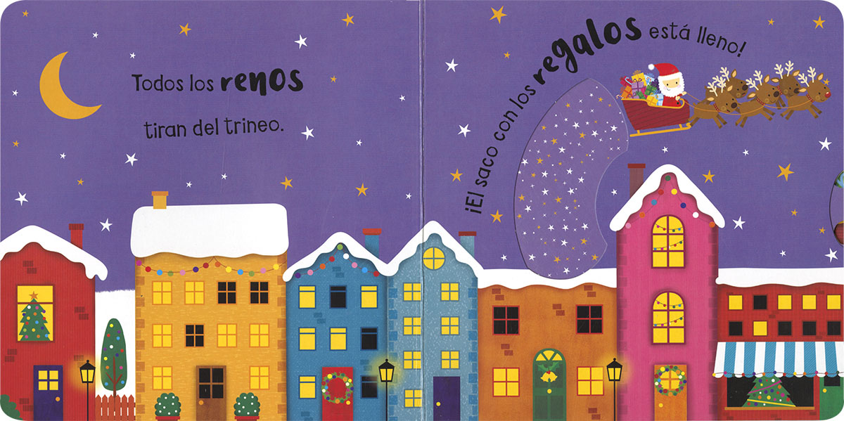Acompaña a Papá Noel en el día más especial del año mientras te diviertes con este libro interactivo. Con una lengüeta, una rueda, un pop-up... ¡Lee y juega en Navidad!