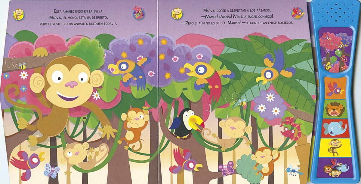 Encuadernación:  Cartón plastificado mate y brillo, troquelado, con estampación y 6 pulsadores sonoros