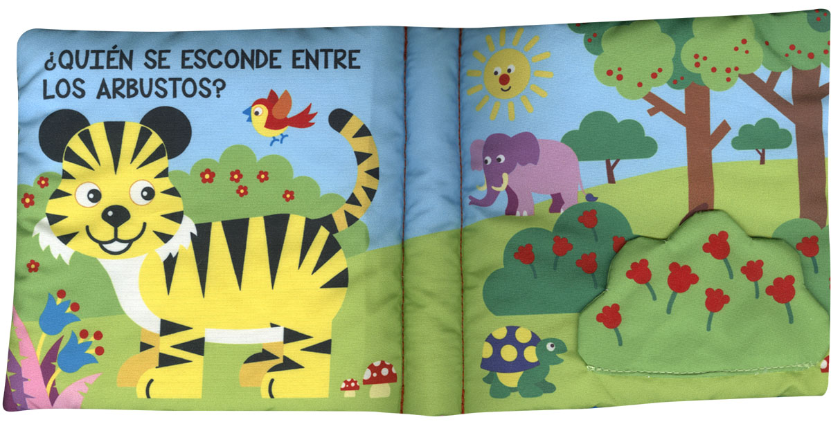 Juega con el tigre al escondite y encuentra a sus amigos en la selva. Un divertido libro de tela suave y blandito para los más pequeños de la casa.
