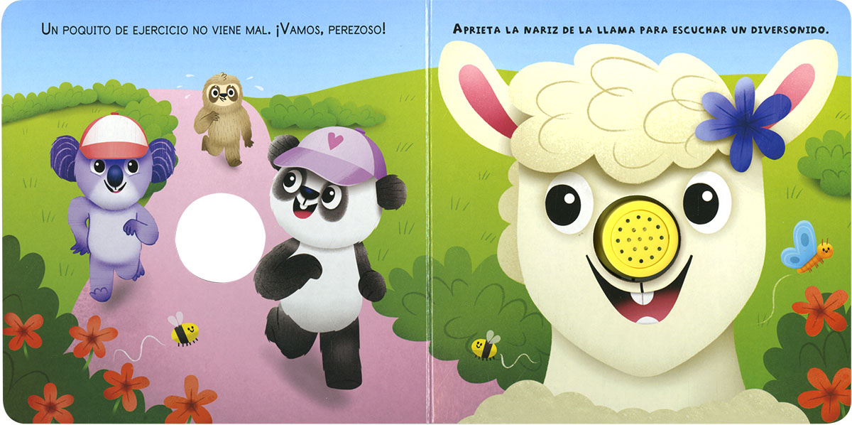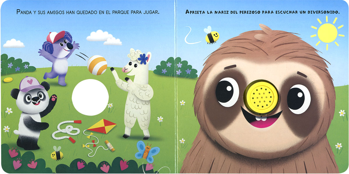 Aprieta la nariz del panda y de sus amigos ¡y escucha un sonido diferente cada vez! Un libro de cartón ideal para los niños más pequeños, que no se cansarán de apretar la nariz de los animales.
