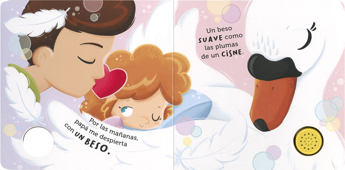 Encuadernación:  Cartoné con cubierta plastificada mate y troquelada con módulo sonoro, interior de cartón