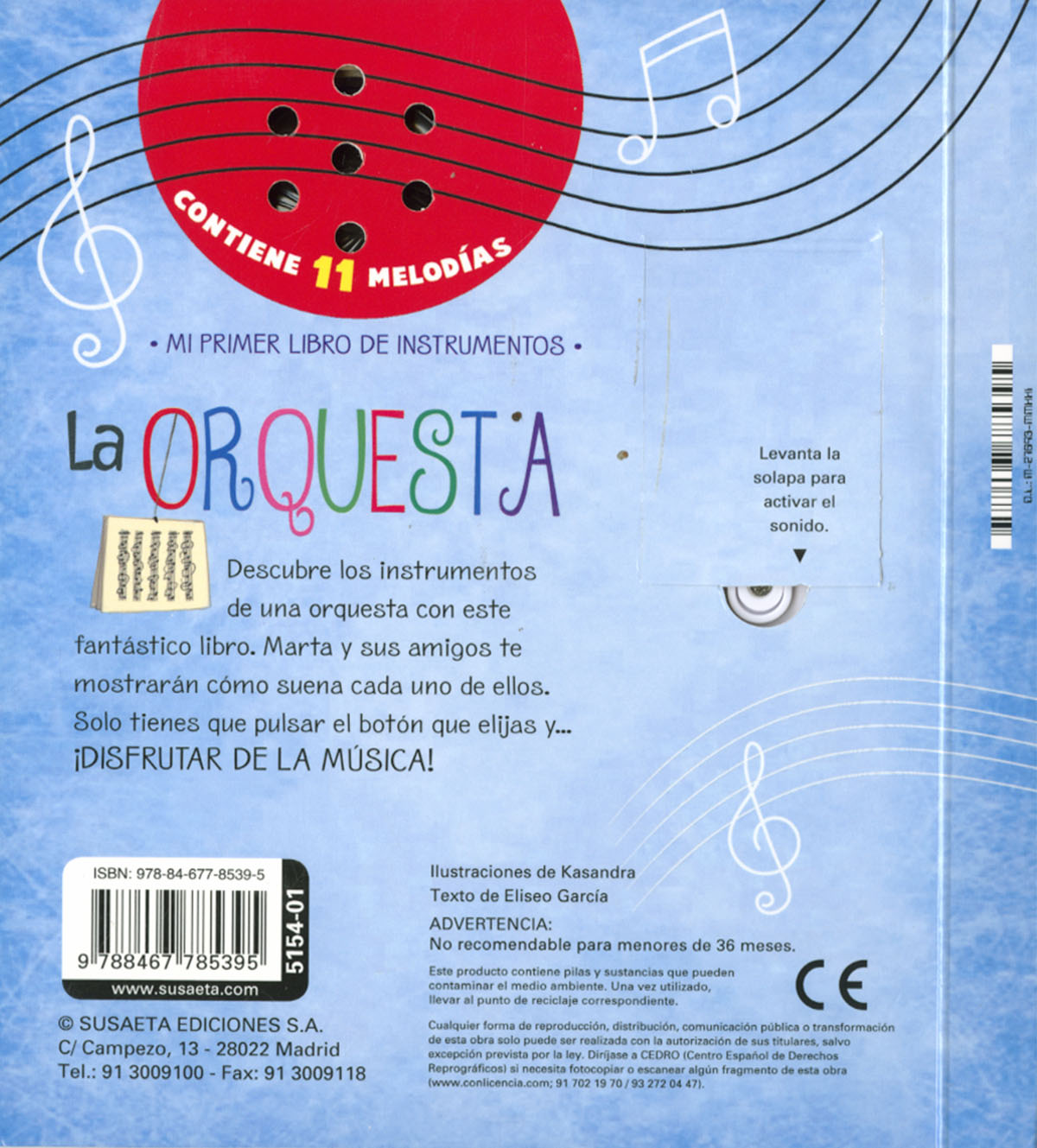 Encuadernación:  Cartón plastificado brillo, con 11 pulsadores musicales