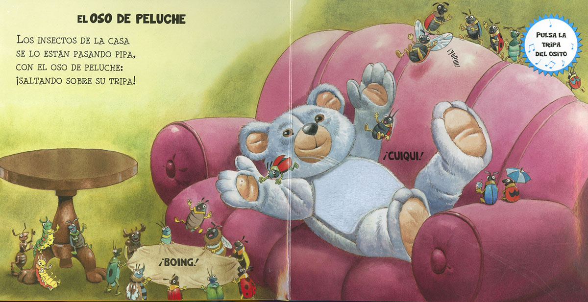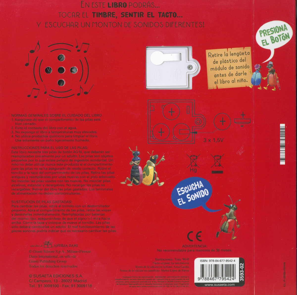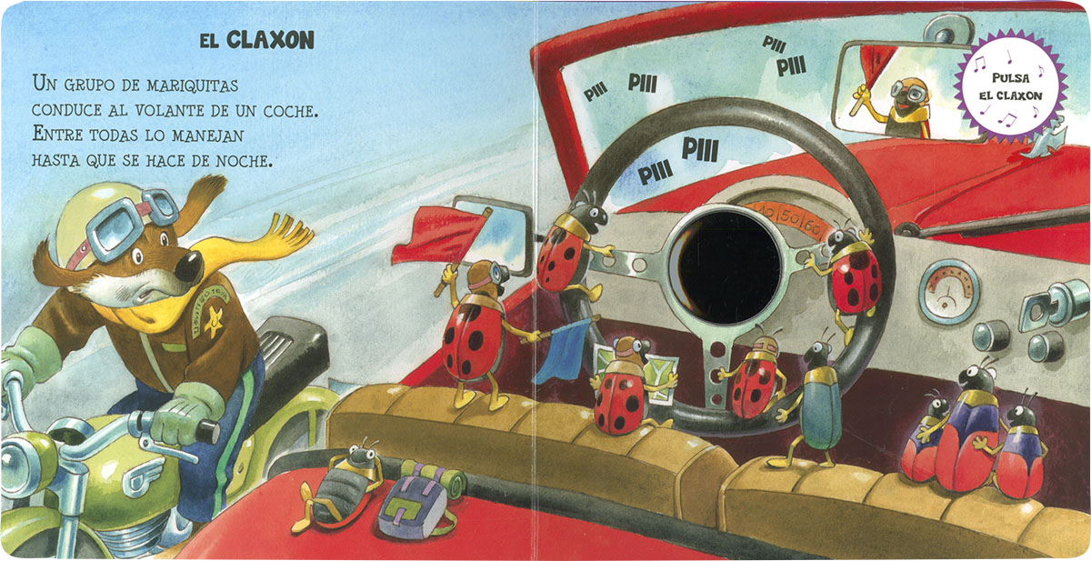Encuadernación:  Cartón plastificado y troquelado con texturas y módulo de sonido