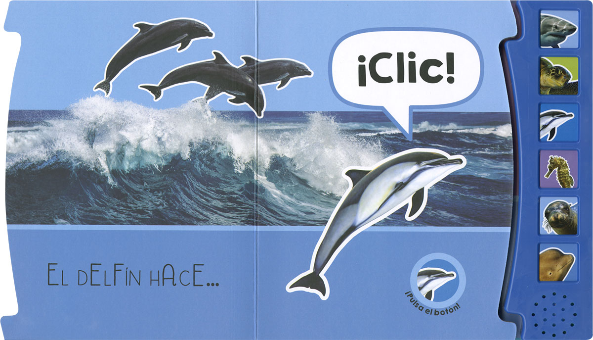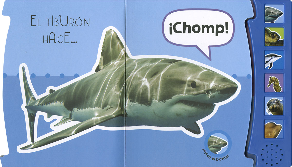 Pulsa los botones y escucha a los animales del mar. ¡Igual que si los tuvieras a tu lado! Un libro infantil de cartón ideal para empezar a conocer el mundo.