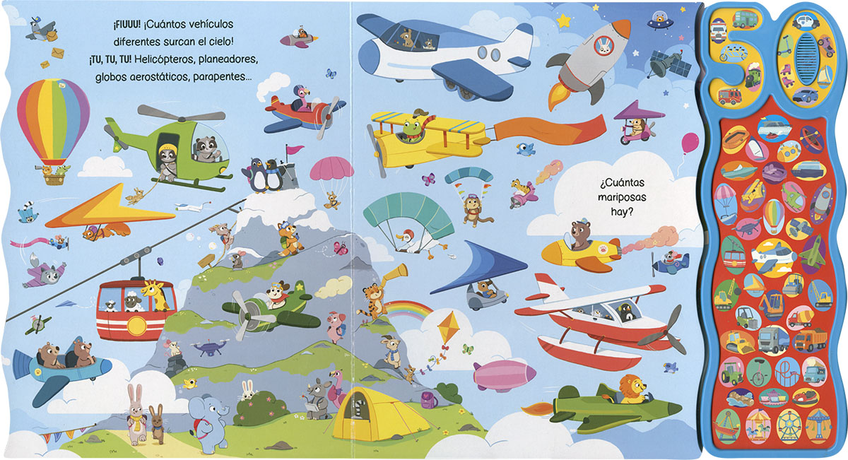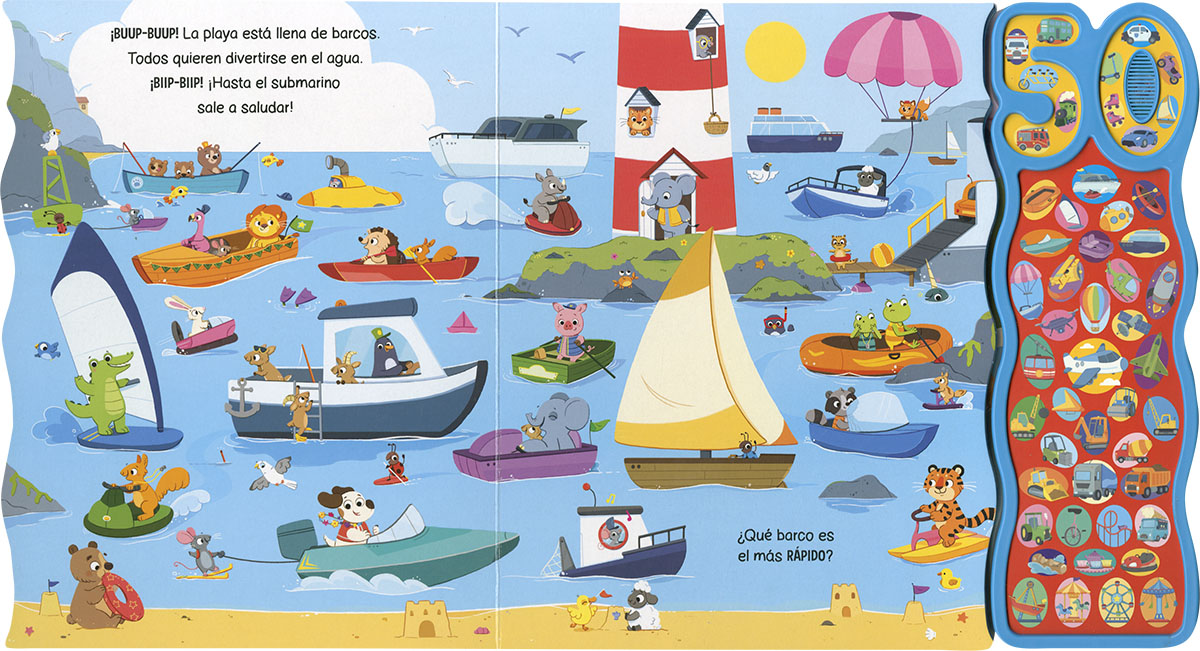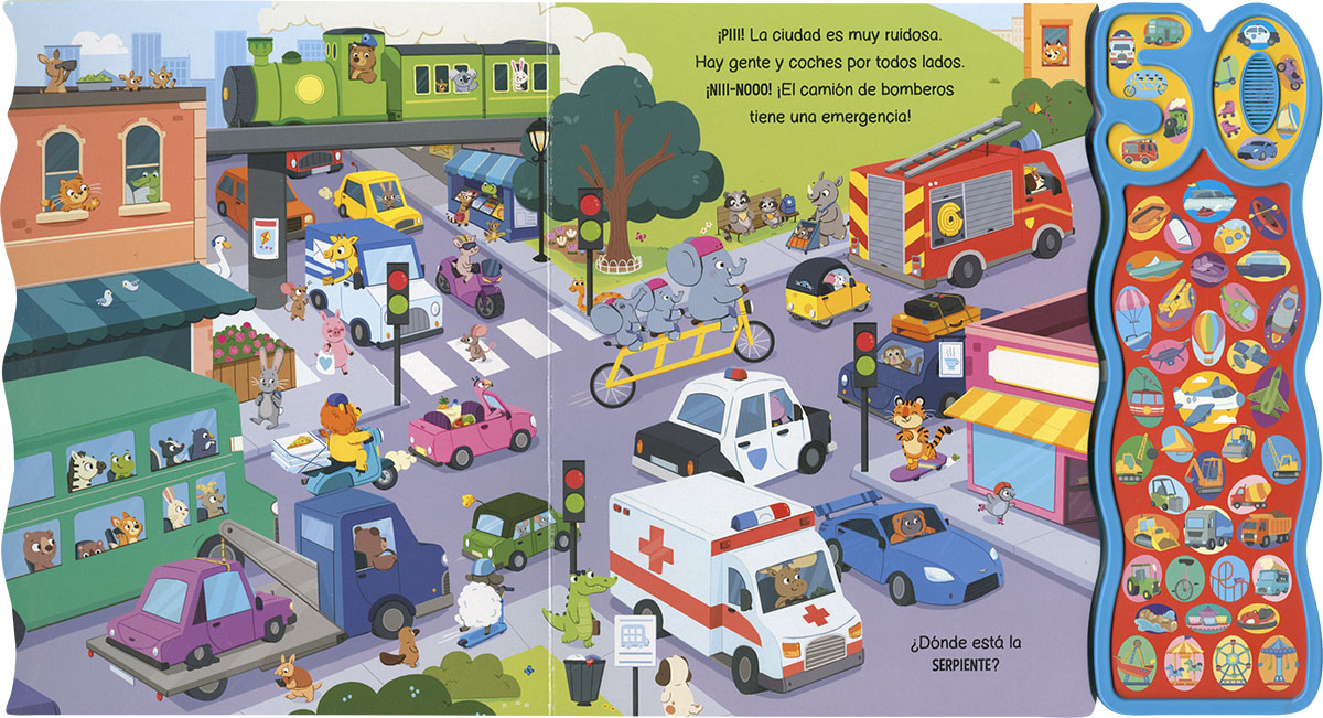 Sabes qué sonidos hacen un helicóptero, un avión o un tractor? Abre este libro de carrtón, pulsa los sonidos y descúbrelo. Hay nada menos que 50 sonidos, ¡y puedes escucharlos cuantas veces quieras!