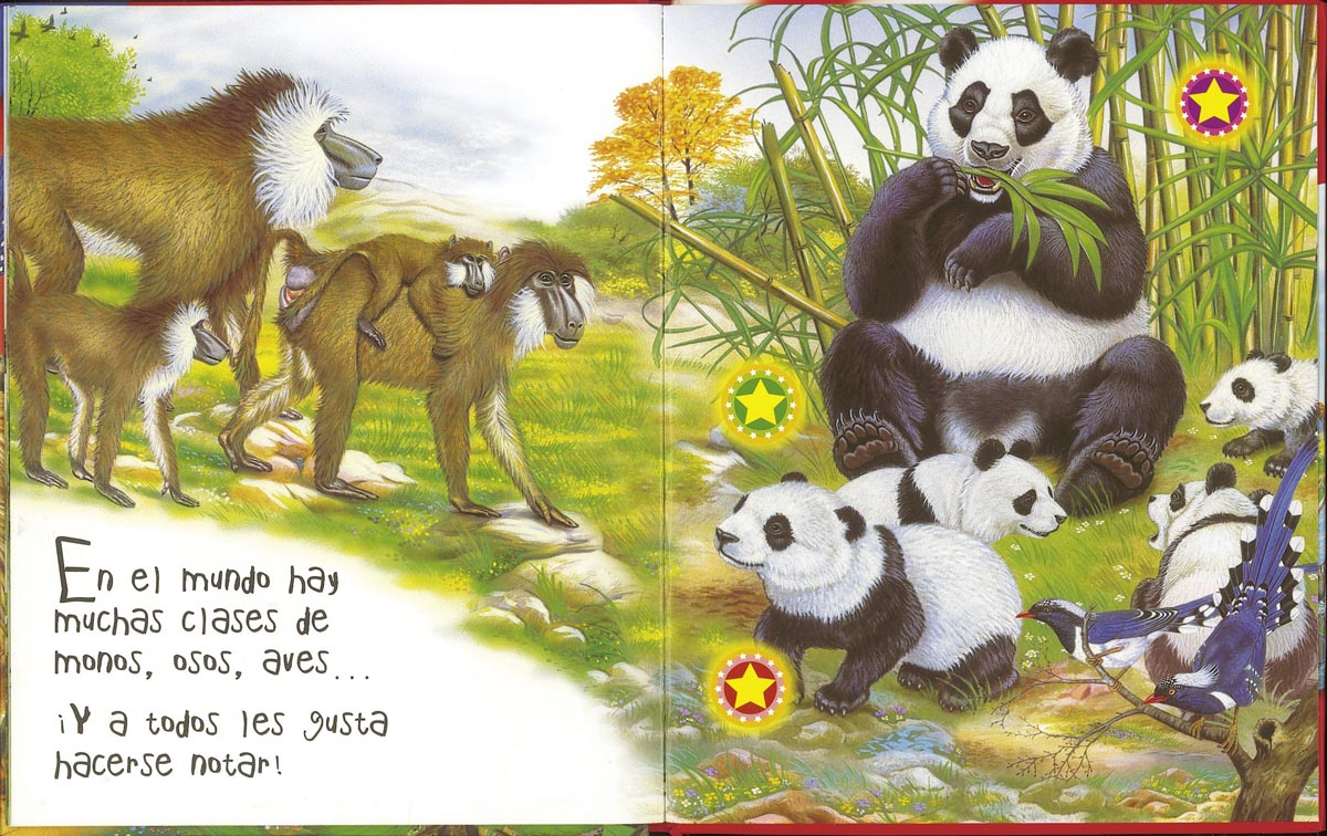 Encuadernación:  Cartoné con cubierta plastificada mate y troq. con purpurina y botones sonoros en las páginas