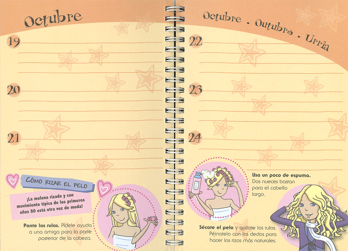 La agenda escolar permanente de chicas con estilo te ayudará a organizar todos los datos, horarios, controles, etc. que quieras recordar durante el curso escolar, y al mismo tiempo te divertirás y aprenderás un montón para convertirte en una chica con estilo. Incluye una agenda de teléfonos y mucho espacio para que escribas todo lo que quieras.