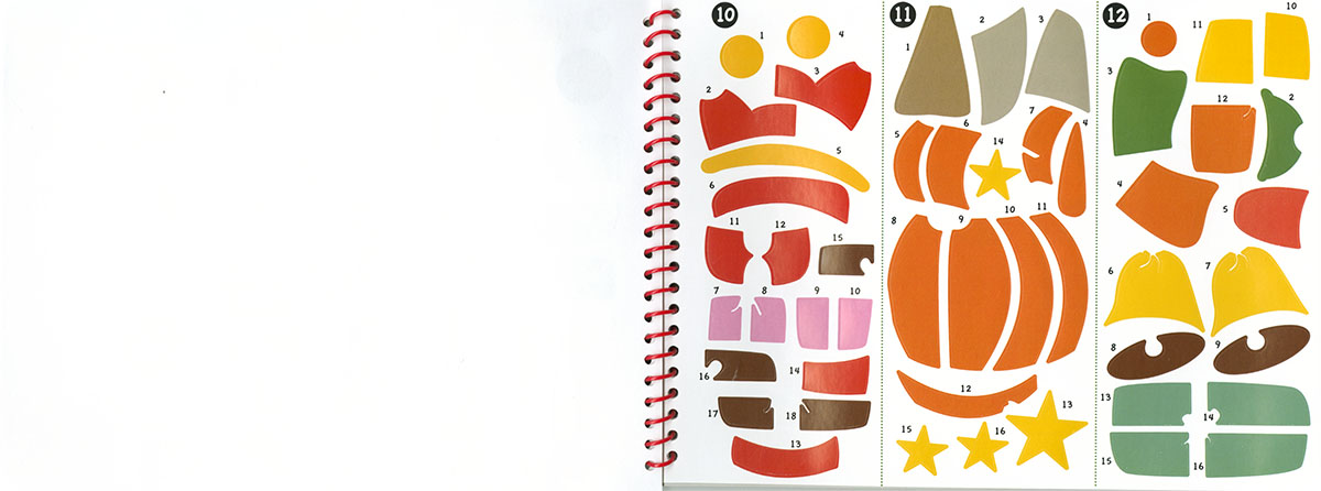 Encuadernación:  Cartulina con acabado en brillo y troquelada, encuadernación con espiral. Interior con pegatinas.