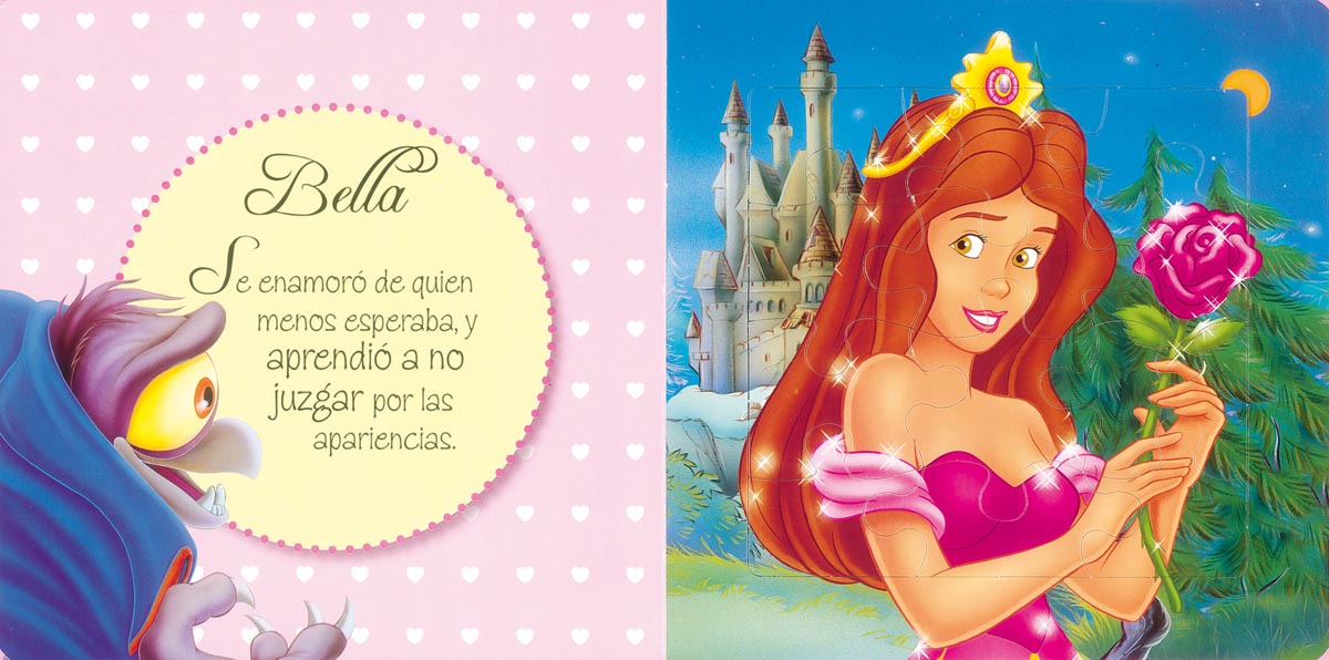Encuadernación:  Cartoné con cubierta plastif. mate y troquelada con purpurina, int.de cartón con 6 puzles de 12 pzas