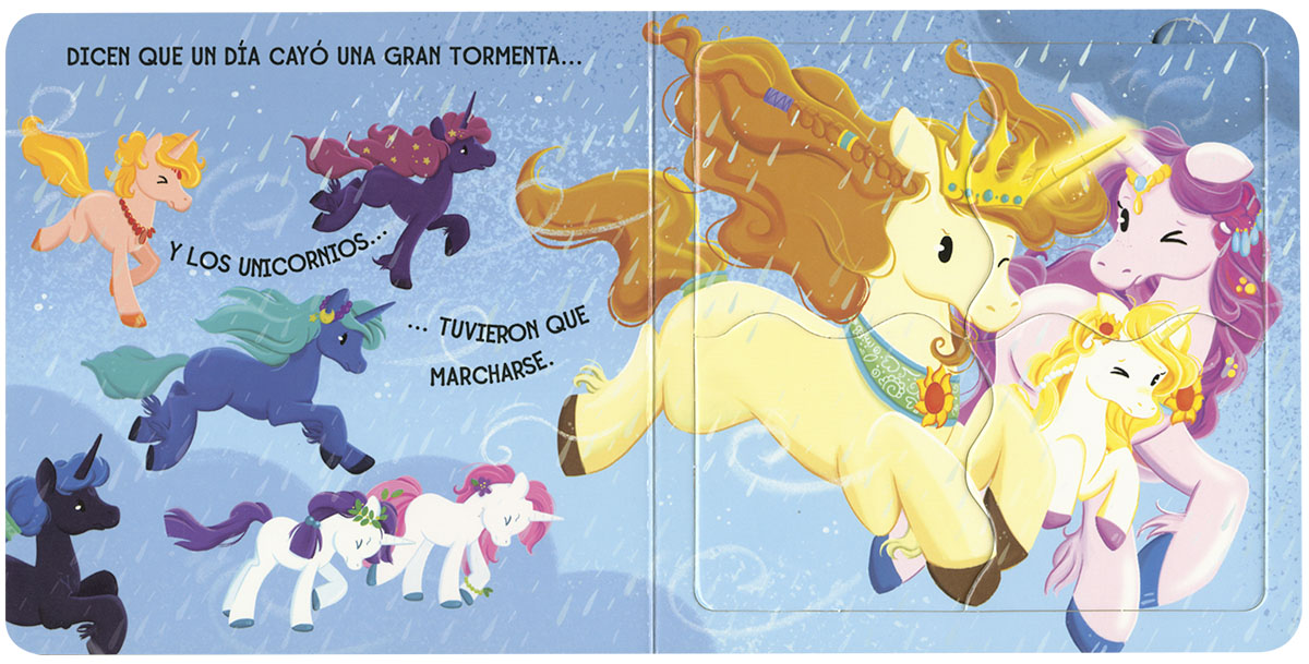 Hace muchos años los unicornios vivían en un lejano país en el que reinaba el Gran Unicornio Dorado. Una bella historia para que los pequeños lectores disfruten de los unicornios y jueguen montando los sencillos puzles.
