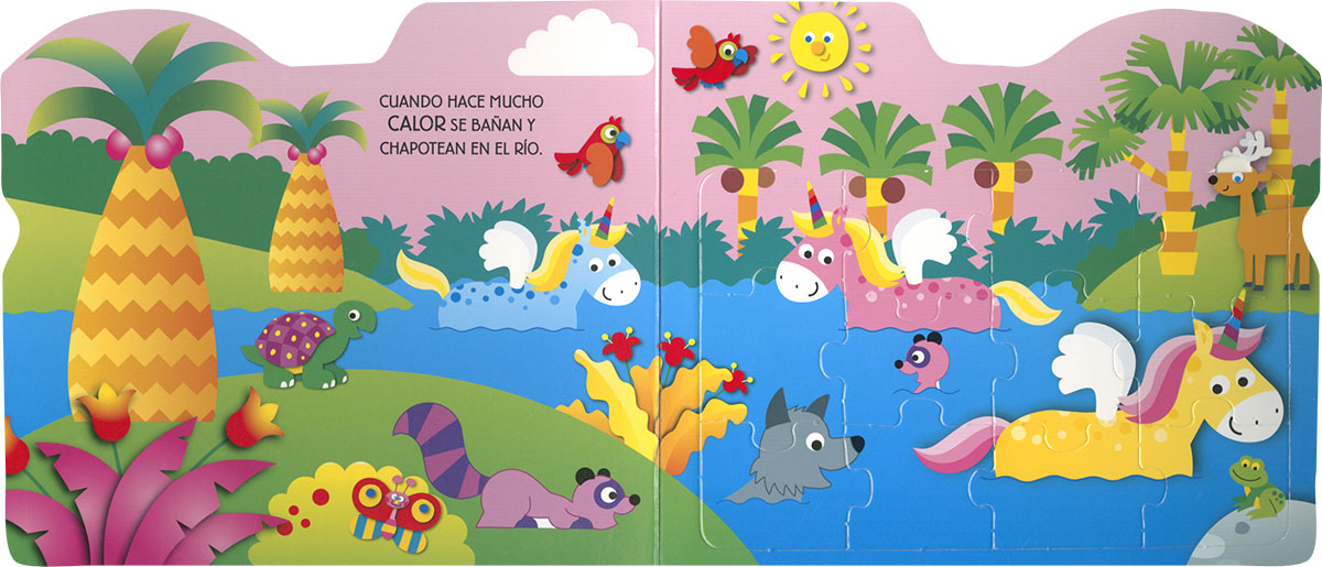 Un libro para leer y jugar con los unicornios. Monta los puzles que encontrarás en cada página y diviértete con tus animales preferidos.