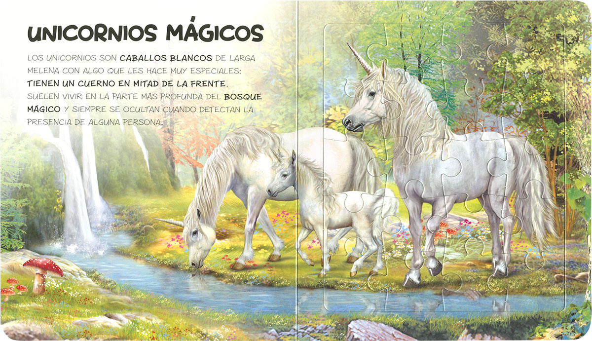 Descubre en este libro la vida de los unicornios y de sus amigos del bosque mágico. Aprende con él muchas curiosidades sobre sus gustos, sus costumbres, sus temores..., y juega con los puzles que encontrarás en sus páginas.