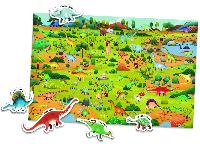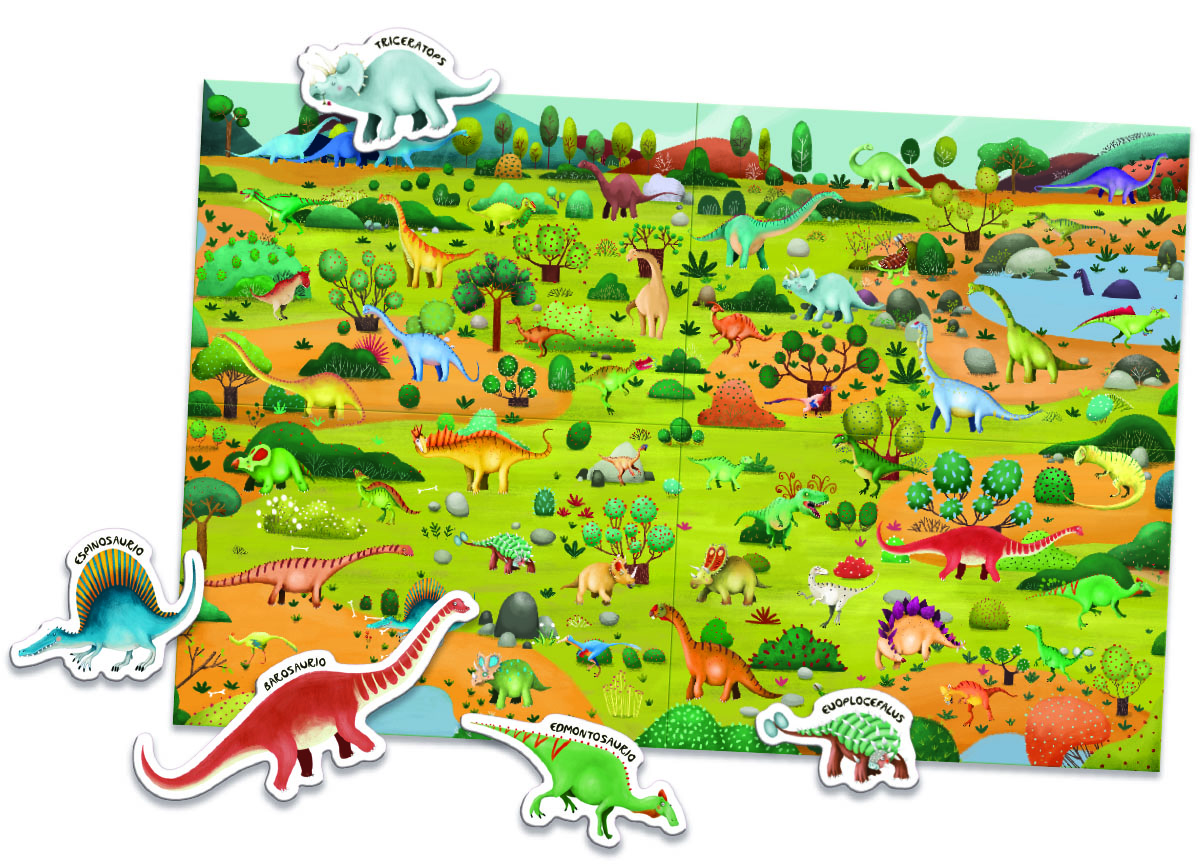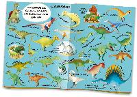 Un libro y un juego. Una divertida forma de aprender un montón de cosas sobre las criaturas más fascinantes que han habitado la Tierra. Un libro donde descubrirlas y un juego con un gran tablero y animales magnéticos para buscar, reconocer y colocar sobre la imagen una vez que se han localizado.