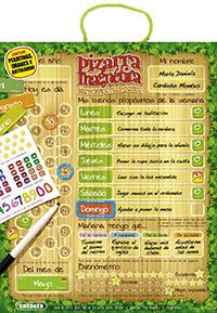 Encuadernación:  Sobre de cartulina plastificada con asa, contiene: pizarra magnética, pegatinas, imanes y rotulador