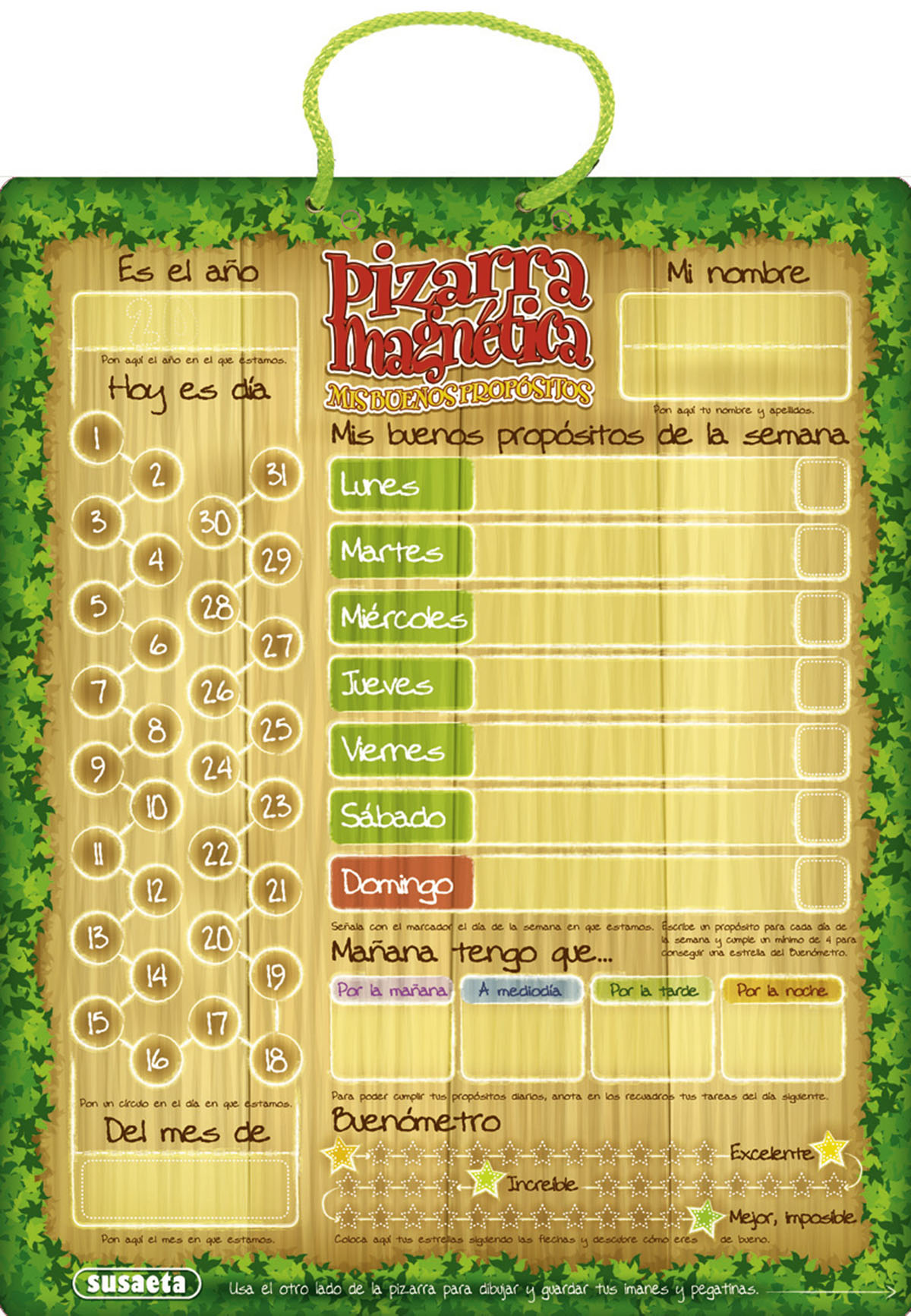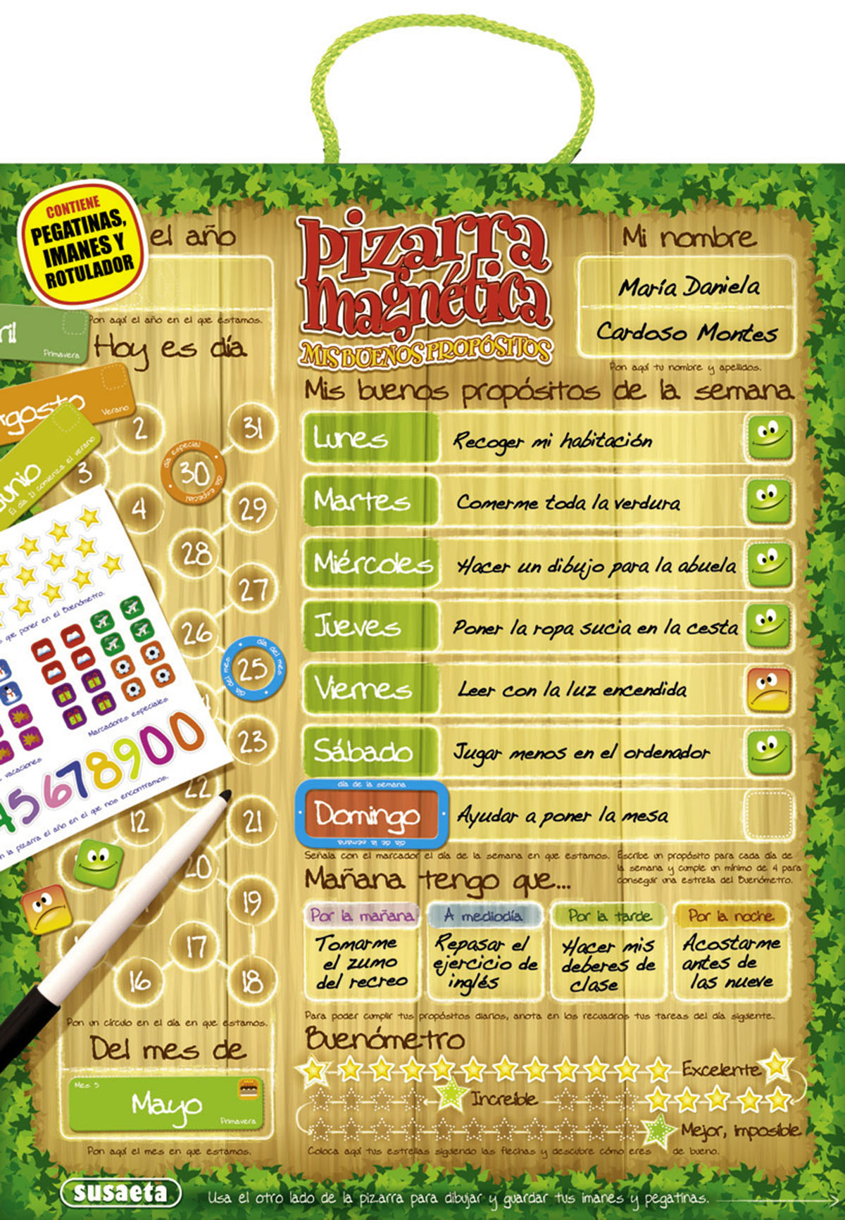 Esta pizarra es algo más que un entretenimiento para niños; supone una eficaz forma de aprender las bases de la organización y el compromiso mediante un divertido juego en el que el niño, día a día, y a lo largo del año, puede ver su evolución. Incluye imanes, pegatinas y un rotulador no permanente para poder disfrutar de ella duante mucho tiempo.