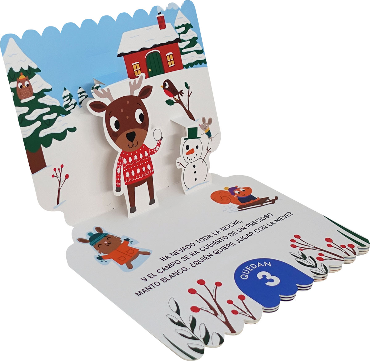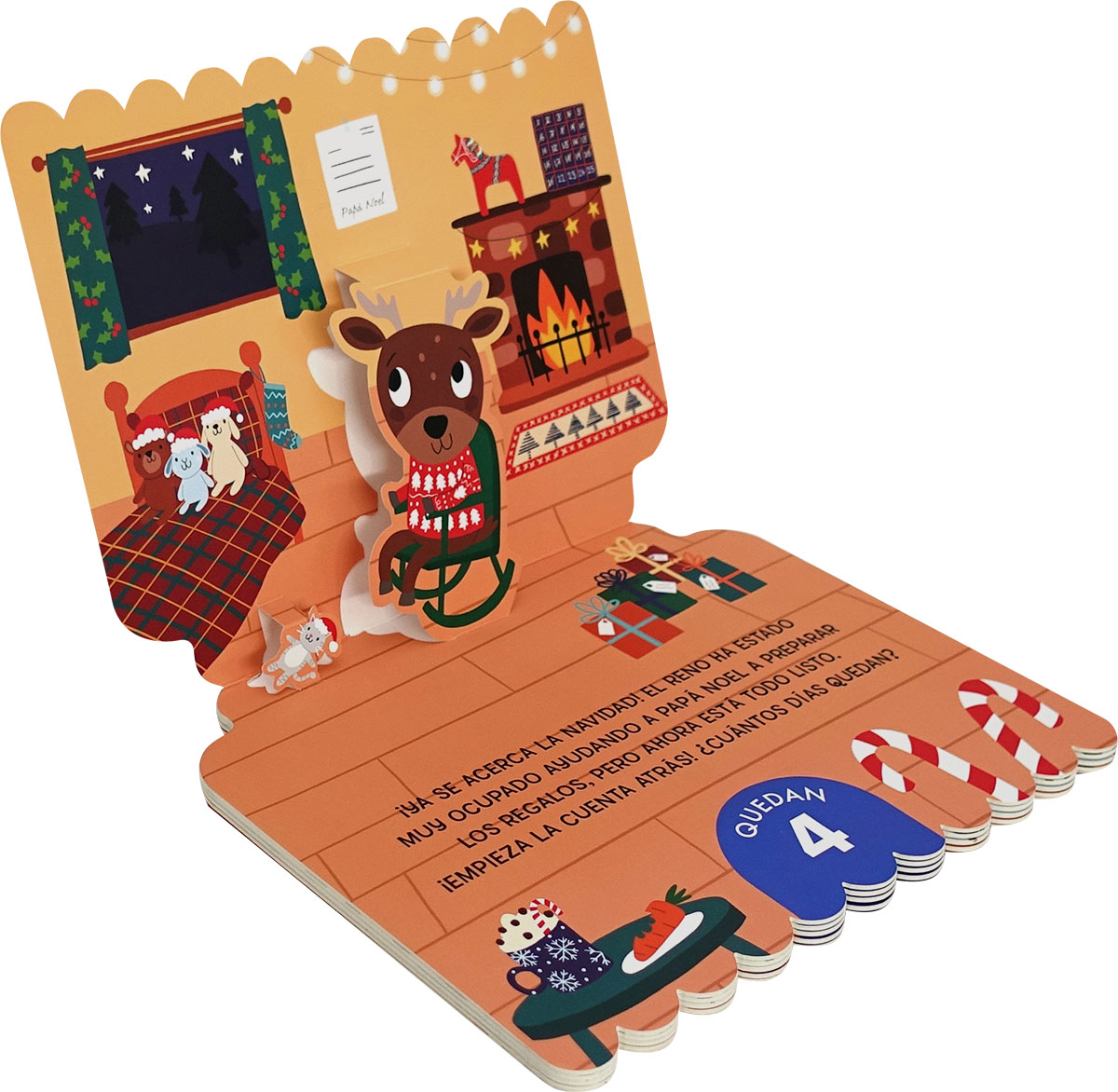 Se acerca la Navidad! El reno ha trabajado mucho ayudando a preparar los regalos que repartirá Papá Noel. Ahora solo queda esperar a que llegue el mejor día del año. ¿Cuántos días quedan? ¡Averígualo con este simpático libro pop-up!