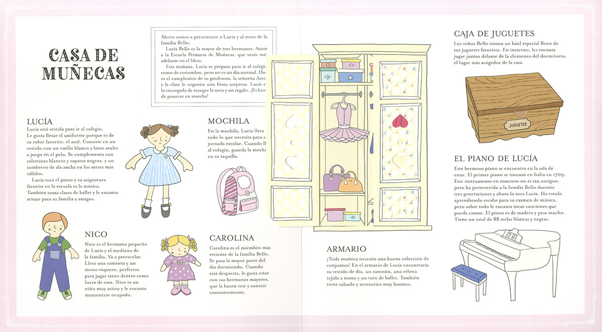 Lucía es una muñeca que vive en una preciosa casa con su familia. Como todas las muñecas, ella también cobra vida cuando los humanos no miran... Este precioso libro pop-up, con solapas para levantar, te revelará la vida secreta de las muñecas. ¡No es muy diferente de la tuya!