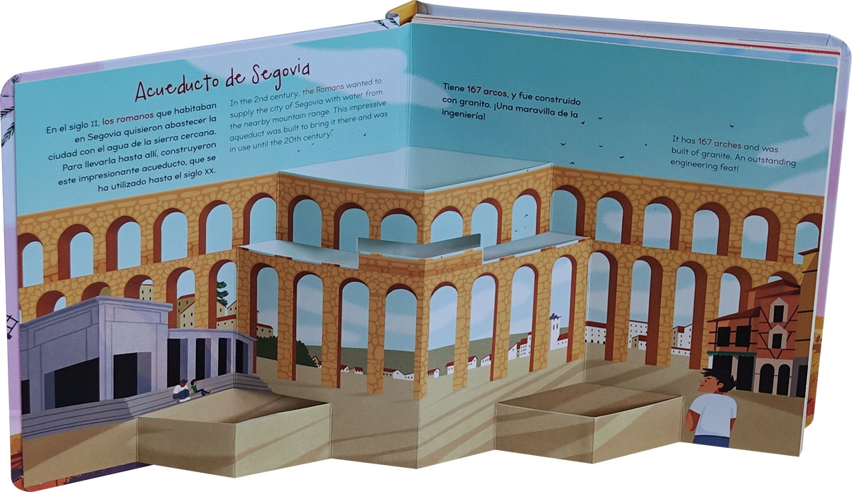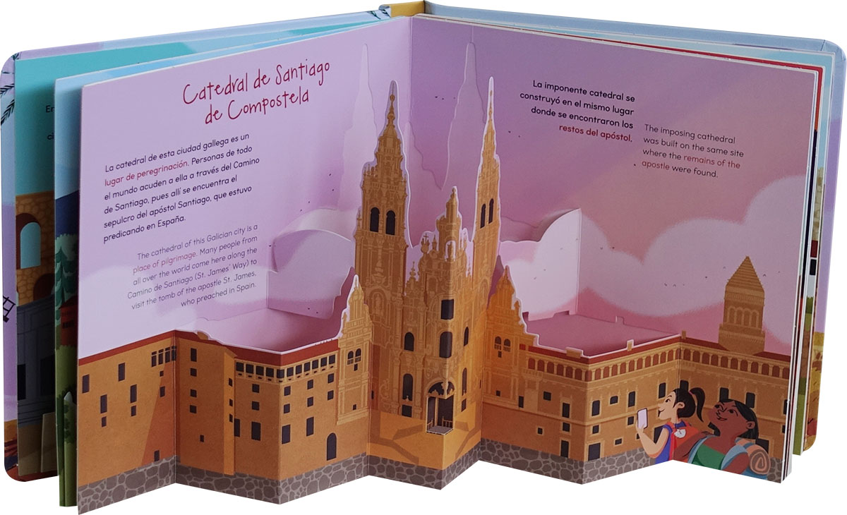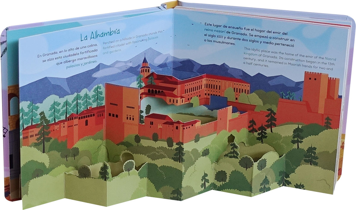 Viaja por España y descubre 8 lugares emblemáticos con los pop-up de este libro. En edición bilingüe español-inglés.