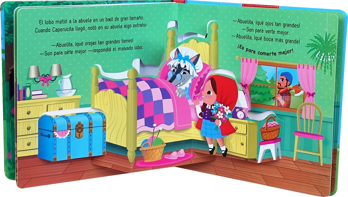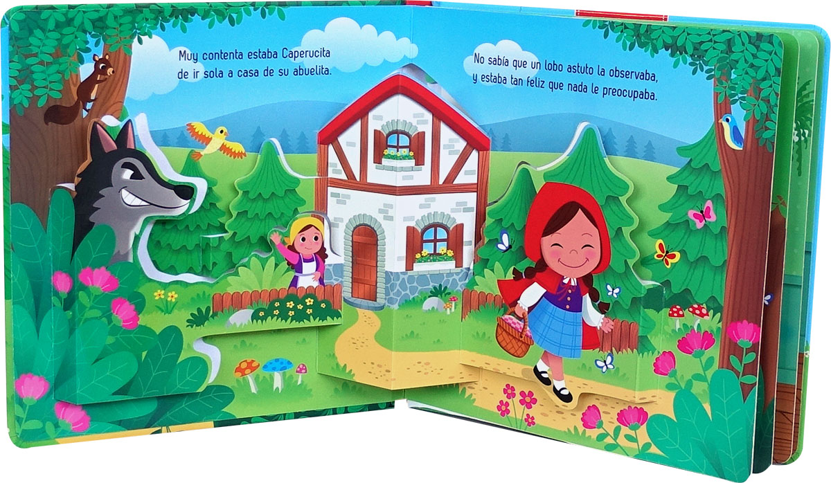 Abre este fantástico cuento desplegable de CAPERUCITA ROJA, lleno de simpáticas ilustraciones a todo color, y haz que cobre vida mientras disfrutas de la lectura.