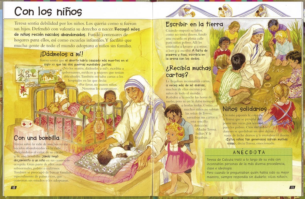 Teresa de Calcuta convirtió en amor todo lo que tocó. Dedicó su vida a los demás por amor a Dios, y ésa es la causa de la huella imborrable que ha dejado en la Historia. Este libro, lleno de datos, curiosidades, recuadros y preciosas ilustraciones, ofrece a los jóvenes lectores una forma entretenida y diferente de adentrarse en la biografía de una de las mujeres más importantes del siglo XX.