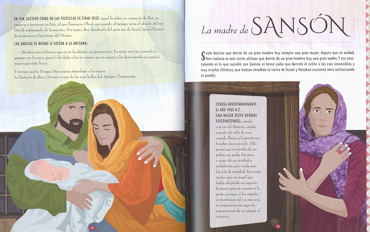 En la Biblia, aparecen multitud de personajes femeninos de todo tipo y condición. Mujeres buenas y malas; jóvenes y ancianas; casadas, solteras y viudas; madres y vírgenes; famosas y anónimas; ricas y pobres; santas y pecadoras... Y de todas ellas se puede aprender algo. En este libro se recoge de forma resumida la apasionante e interesante trayectoria de 22 mujeres que aparecen en la Biblia, desde Eva hasta María Magdalena, pasando por Sara, Rebeca, Dalila, Judit, la Virgen María, Salomé, y muchas otras. Constituyen solo una pequeña muestra de las más importantes, tanto por su trascendencia general como por su aportación individual. Porque a veces una sola persona puede cambiar el curso de la historia.