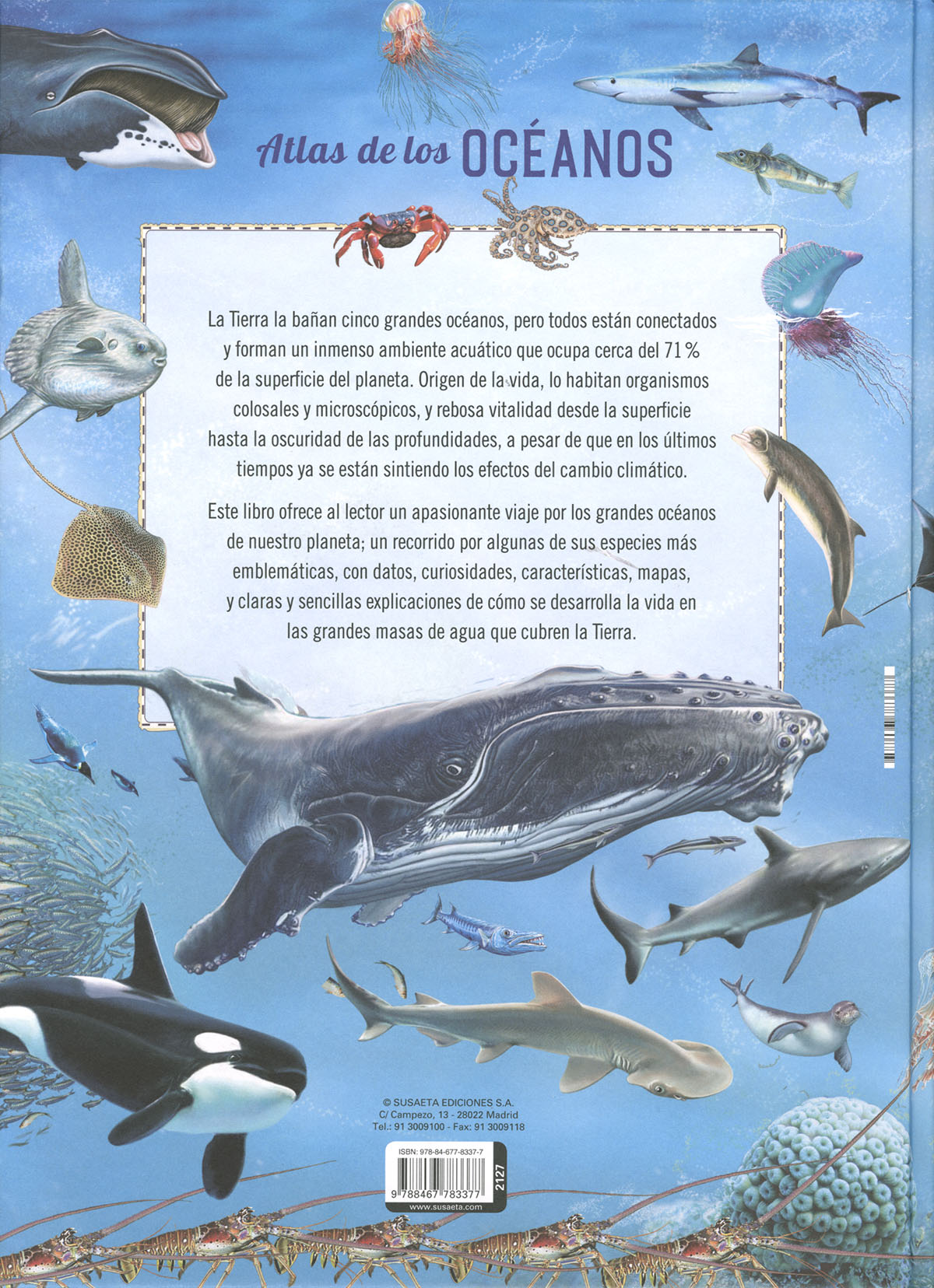 La Tierra la bañan cinco grandes océanos, pero todos están conectados y forman un inmenso ambiente acuático que ocupa cerca del 71% de la superfi cie del planeta. Origen de la vida, lo habitan organismos colosales y microscópicos, y rebosa vitalidad desde la superfi cie hasta la oscuridad de las profundidades, a pesar de que en los últimos tiempos ya se están sintiendo los efectos del cambio climático. Este libro ofrece al lector un apasionante viaje por los grandes océanos de nuestro planeta; un recorrido por algunas de sus especies más emblemáticas, con datos, curiosidades, características, mapas, y claras y sencillas explicaciones de cómo se desarrolla la vida en las grandes masas de agua que cubren la Tierra.