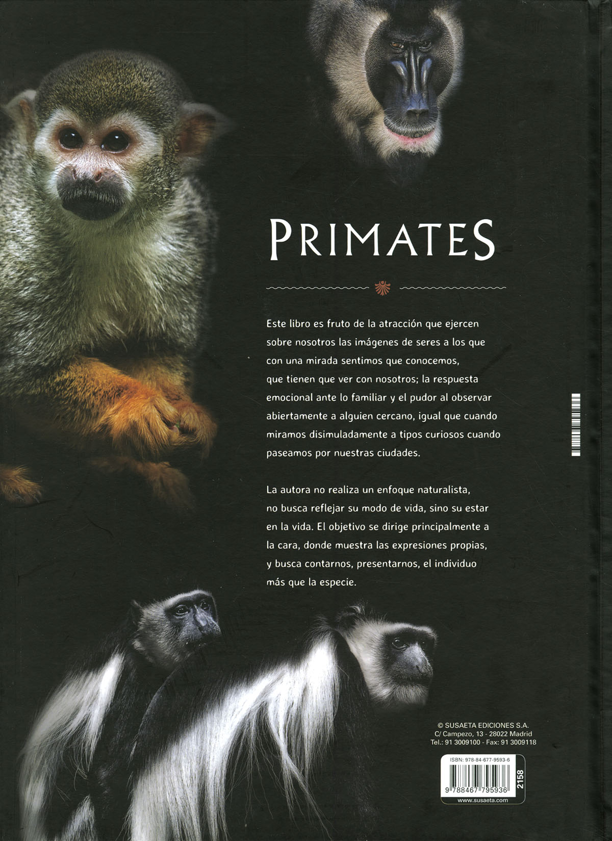 Este libro es fruto de la atracción que ejercen sobre nosotros las imágenes de seres a los que con una mirada sentimos que conocemos, que tienen que ver con nosotros, la respuesta emocional ante lo familiar y el pudor al observar abiertamente a alguien cercano, igual que cuando observamos disimuladamente a tipos curiosos cuando paseamos por nuestras ciudades. La autora no realiza un enfoque naturalista, no busca reflejar su modo de vida, sino su estar en la vida. El objetivo se dirige principalmente a la cara, donde muestra las expresiones propias, y busca contarnos, presentarnos, el individuo más que la especie.