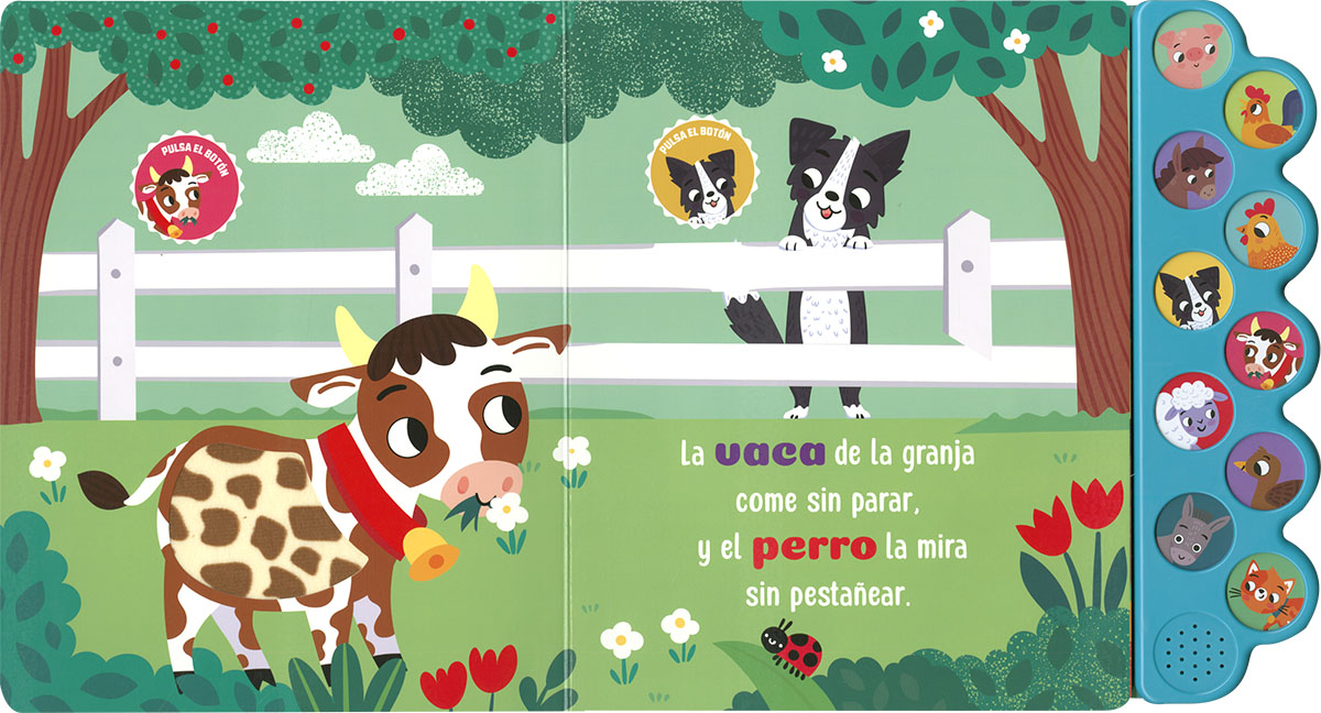 Oyes al caballo? ¿Y a la gallina? ¡Pulsa el botón y escúchalos! Descubre el sonido que hacen los animales de la granja y siente las texturas de su cuerpo con este libro interactivo ilustrado. Con 10 sonidos y 6 texturas, este libro infantil de cartón será tu favorito.