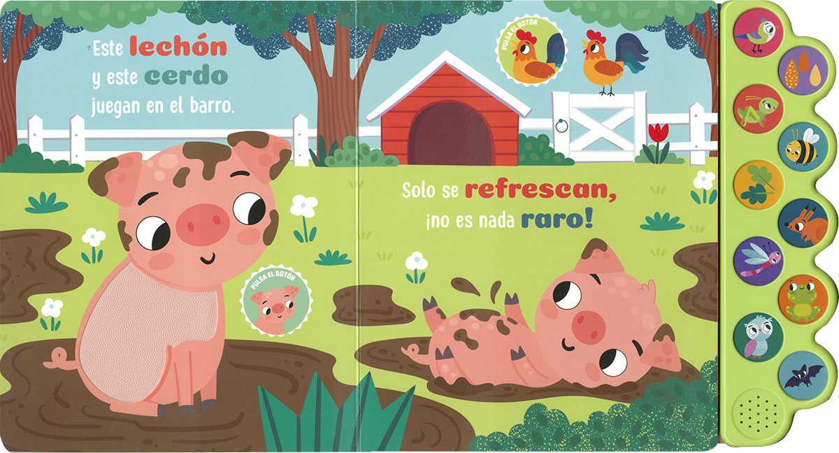 Encuadernación:  Libro de cartón plastificado en brillo, con módulo de sonido y texturas en interior y exterior.